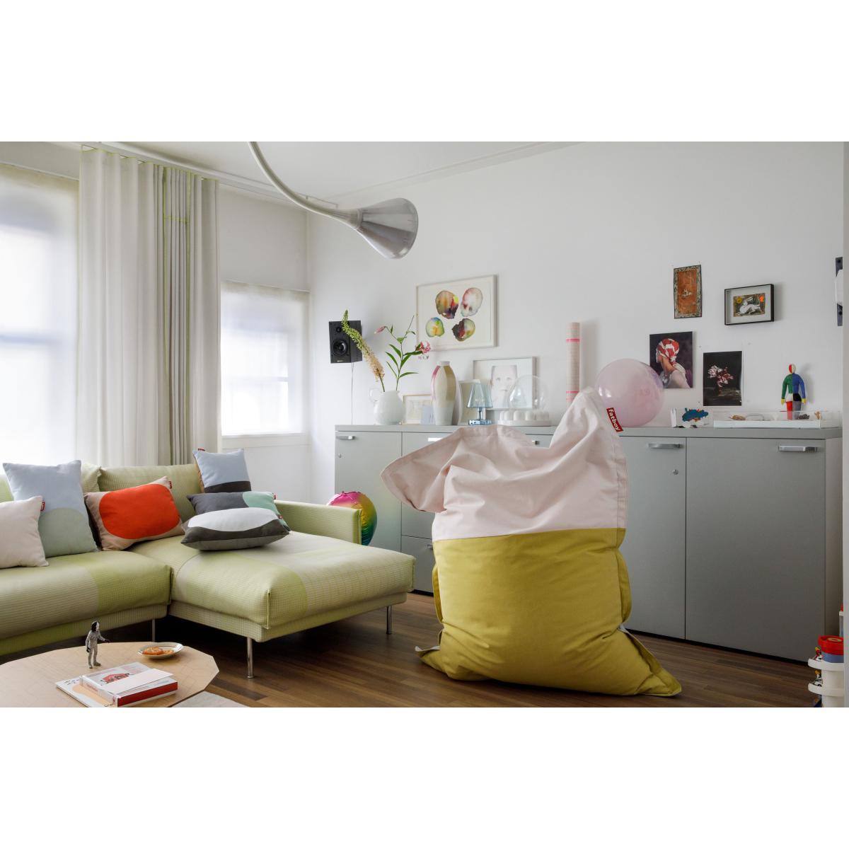 Fatboy sees life in colour. These cushions are decorated in a cotton cover designed by Carole Baijings, a Dutch designer with a rich chromatic palette. Exhibited in the most prestigious museums (the Victoria and Albert Museum in London, Rijksmuseum in Amsterdam, etc. ), Carole Baijings' work stands out through an extremely balanced use of colours and interplays of graphical lines. Coming straight from a watercolour palette, the Pop Pillow cushions sport a blend of joyous intensity, remarkable restraint, poetry and geometry. Carole Baijings has developed a unique colour palette for the A POP OF COLOUR collection. When you look at the bean bag's colours from different angles, they are perceived differently. A master illusionist, this cushion clearly sports a playfulness. Carole Baijings on the use of colours in her work: "Unlike the rules of language in which every combination of words into a sentence tells a story in the end, colour does not have any grammar. All kinds of things have been written on the theory of colours and the way in which they relate to each other and feed into each other. Only music serves as a model for us. Music, which through its ability to create combinations, transgresses all kinds of laws and rules and frees itself as a work of genius. Like a score, I formulate my own colour grammar, while not forgetting to constantly shake up all the conventions, so that materials and colours help one another and produce a harmonious ensemble. " With these pop cushions available in a range of vibrant colours to be matched and combined, it has never been so easy to restyle your sofa, armchair or bed!.