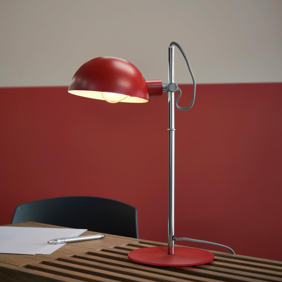 I love this lamp because of its bold retro vibe combined with practical adjustability, making it a versatile piece for both workspaces and reading nooks. The striking red shade brings a pop of colour to neutral or monochrome interiors, but it also works well in more eclectic or vintage-inspired schemes. For styling tips, consider placing it on a minimalist desk or bedside table to add character without clutter. It pairs beautifully with mid-century modern pieces or industrial shelving. To keep the look cohesive, keep other accessories simple and let the lamp be the statement. Its adjustable arm makes it ideal for task lighting, and the colour helps it double as a decorative accent, rather than just a functional piece.