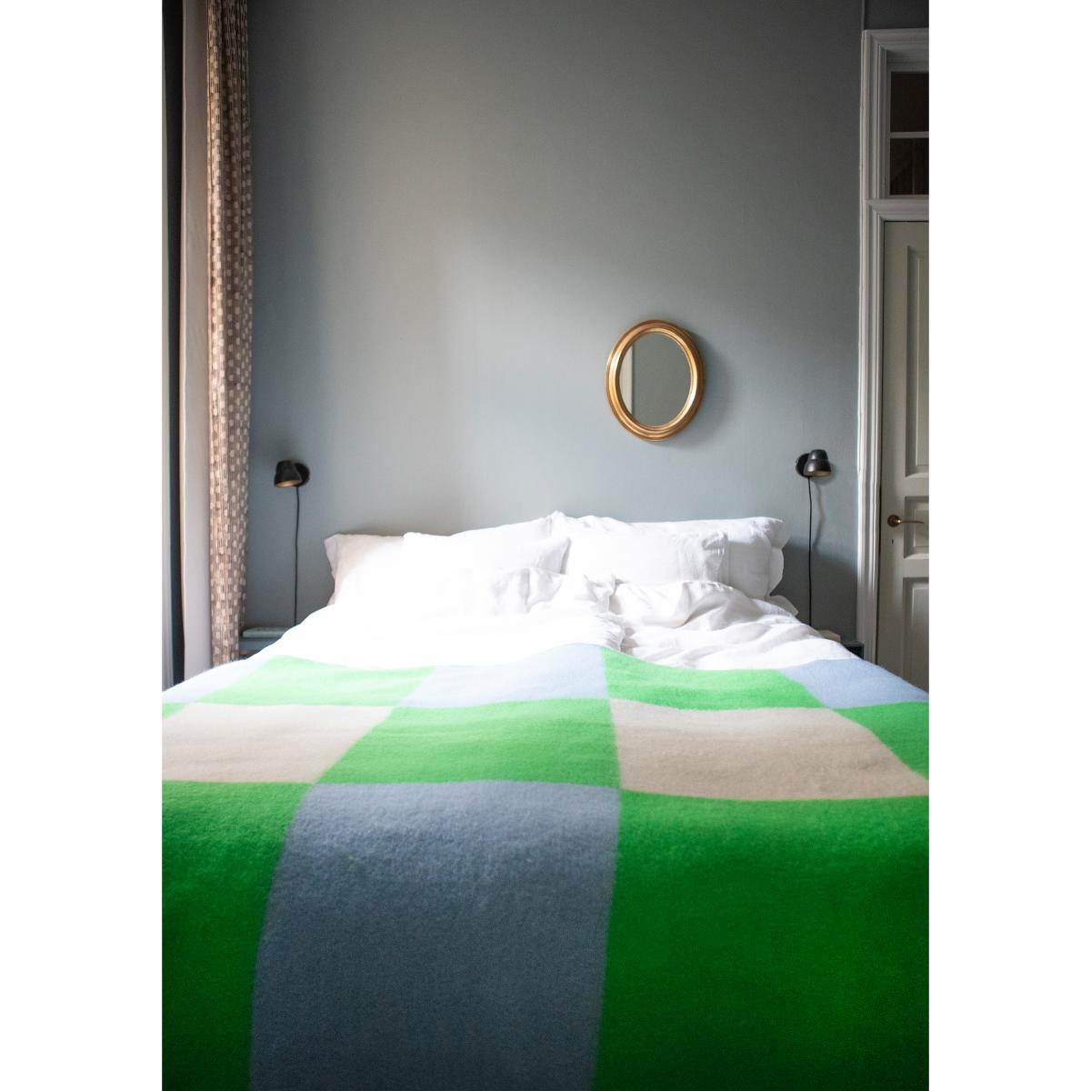 Pop wool blanket 130x200 cm from Brita Sweden is a warming and beautiful blanket woven from Norwegian lambswool. The soft texture is perfect for cosying up in when you're a bit chilly. The blanket is designed with a beautiful pattern of bright and clear colours with decorative stitches along its edge. The size in combination with the beautiful design gives it a wide range of uses and the blanket can also be used as a decorative bedspread on your freshly made bed.