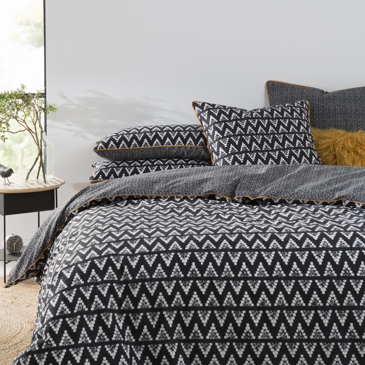 By playing with printed patterns and contrasting bias, the Popayan printed pillowcase offers a bold decorative look.