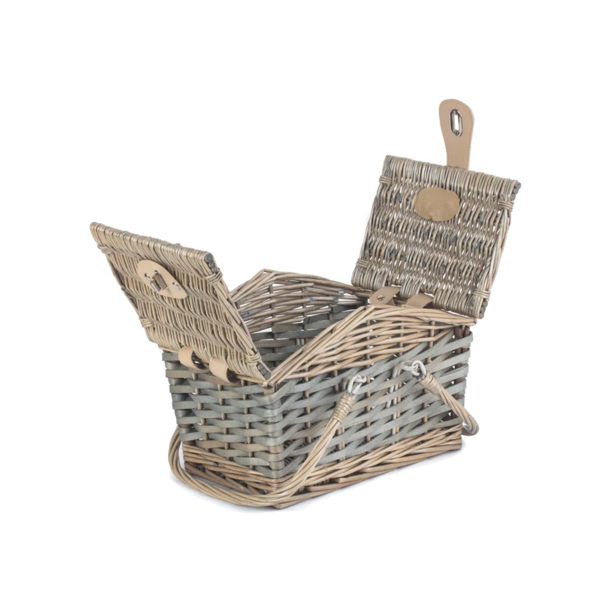Poplar Antique Wash Swing Handle Picnic Basket - Grey