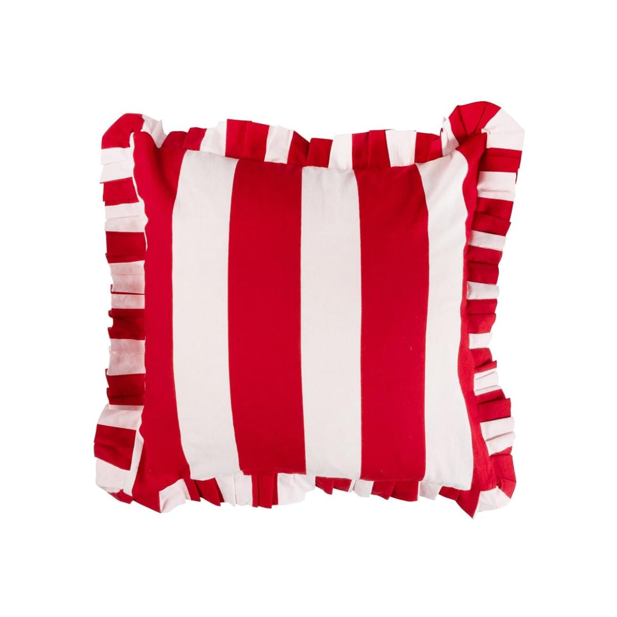 Poppy Cherry Cabana Stripe Ruffled Pillow Cover