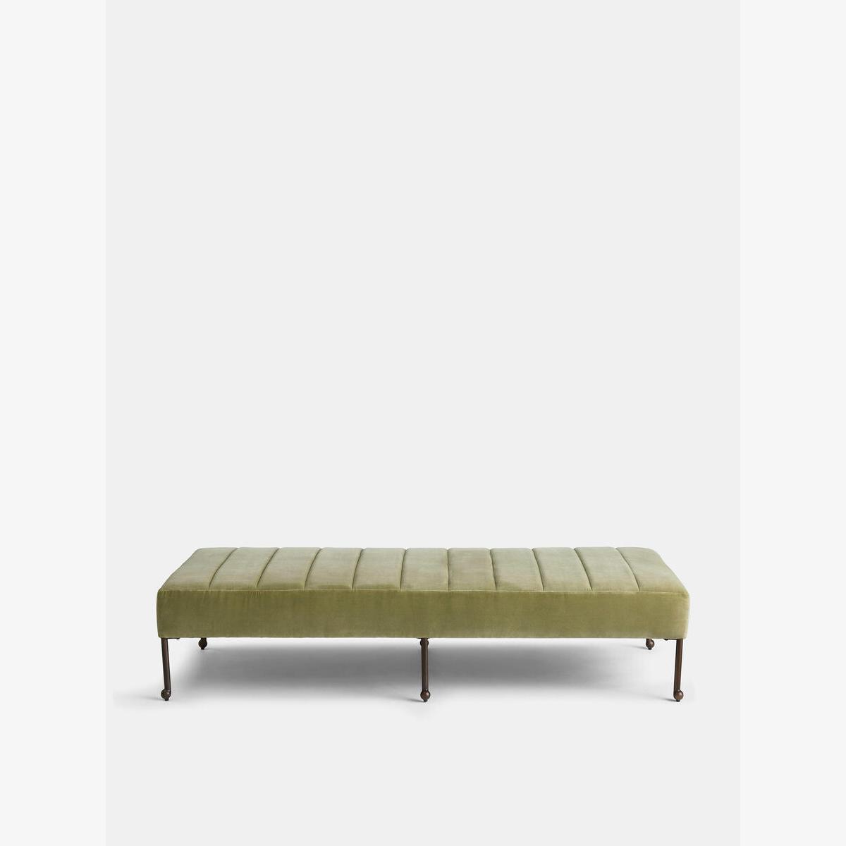 The Poppy daybed is a classic piece inspired by the interiors at Soho House 76 Dean Street. It's constructed from engineered hardwood with a channelled top upholstered in velvet and has six blackened bronze legs. This multi-functional daybed lends itself to many areas of the home, whether it's placed in the bedroom or an entrance. Multi-functional daybed Upholstered in lichen cotton velvet Channelled detail Six blackened bronze legs Also available in Rust Velvet Inspired by Soho House 76 Dean Street