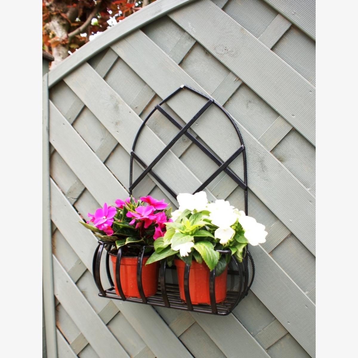 The Poppy Forge - Gothic Wall Planter is constructed from solid steel bar and is available in two finishes: either coated in an antique black polyester paint, or as Poppy Forge's "Ready to Rust" bare metal. Ideal for garden and shed walls, this planter has room for two potted plants, and gets its name from its distinct gothic arch backing. • Backed with a decorative gothic arch • Constructed from 6mm solid steel bar • Choose from two finishes- Antique Black or Ready to Rust bare Metal • Liner/pots not included    Dimensions: Height 53.3cm (21in) Width 35.6cm (14in) Depth 19.1cm (7.5in)
