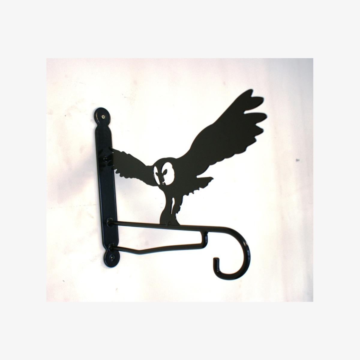 Decorative and functional, the Poppy Forge - Owl Feature Bracket is made from solid steel and coated in a durable black UV stabilised finish. • Feature bracket topped with an owl • Ideal for hanging baskets, but could also be used to hang bird feeders or garden ornaments • Solid steel construction • Coated in a durable black UV stabilised finish • British designed & British made Dimensions: Height: 33cm (13in) Reach: 30.5cm (12in) Suitable for Hanging Basket Size: 30-35cm (12-14in)