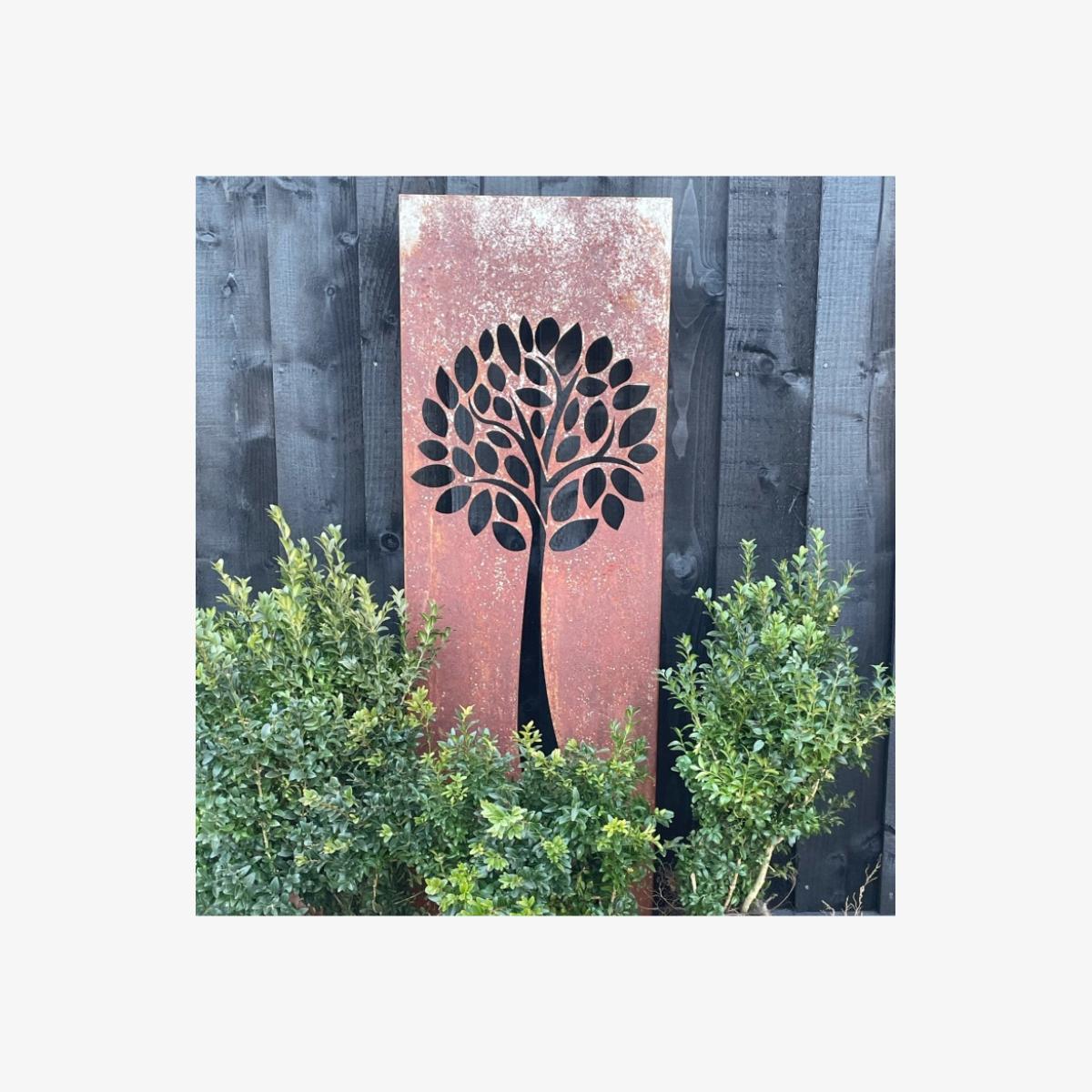 The Poppy Forge Tree Decorative Garden Screen from Poppy Forge would not only make a lovely piece of garden art when nestled between your flowers in your garden beds, but it is also a great option for helping to section off parts of the garden. Each panel includes pre-drilled holes on either side which are perfect for securing multiples together (fittings not included, panels sold separately). Manufactured in the UK from a laser cut 1.5mm solid steel construction which is supplied unpainted in a 'bare metal' state which allows for natural rusting to occur over a period of time to give an authentic rustic appearance. Available in two size options. Supplied assembled, Simply push into the ground using the built in ground spikes. Can be used individually or in multiples Designed & Manufactured in Britain Dimensions: Small Dimensions:Overall Height 46" (1164mm); Width 14" (355mm) Large Dimensions: Overall Height 58" (1473mm); Width 18" (457mm) Allow approx 9" (228mm) to go into the ground