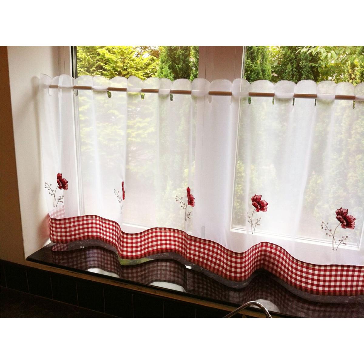 Add the final touches to your kitchen with this poppy themed curtain panel. It features embroidered poppies placed above a gingham checked border.