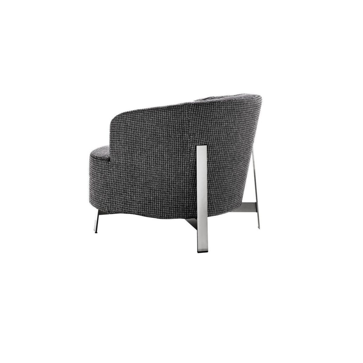 A testimony to their innovative designs, this Copine Lounge Chair by Porada combines a dreamily comfortable sofa chair with an exquisitely formed steel frame. The Italian luxury designer effortlessly lends to its reputation for bespoke furniture with this luxury chair. Featuring a deeply padded, ultra-comfortable cushion that extends generously, the brushed steel back frame and legs make a striking silhouette. Perfect for sinking into at any time of the day.