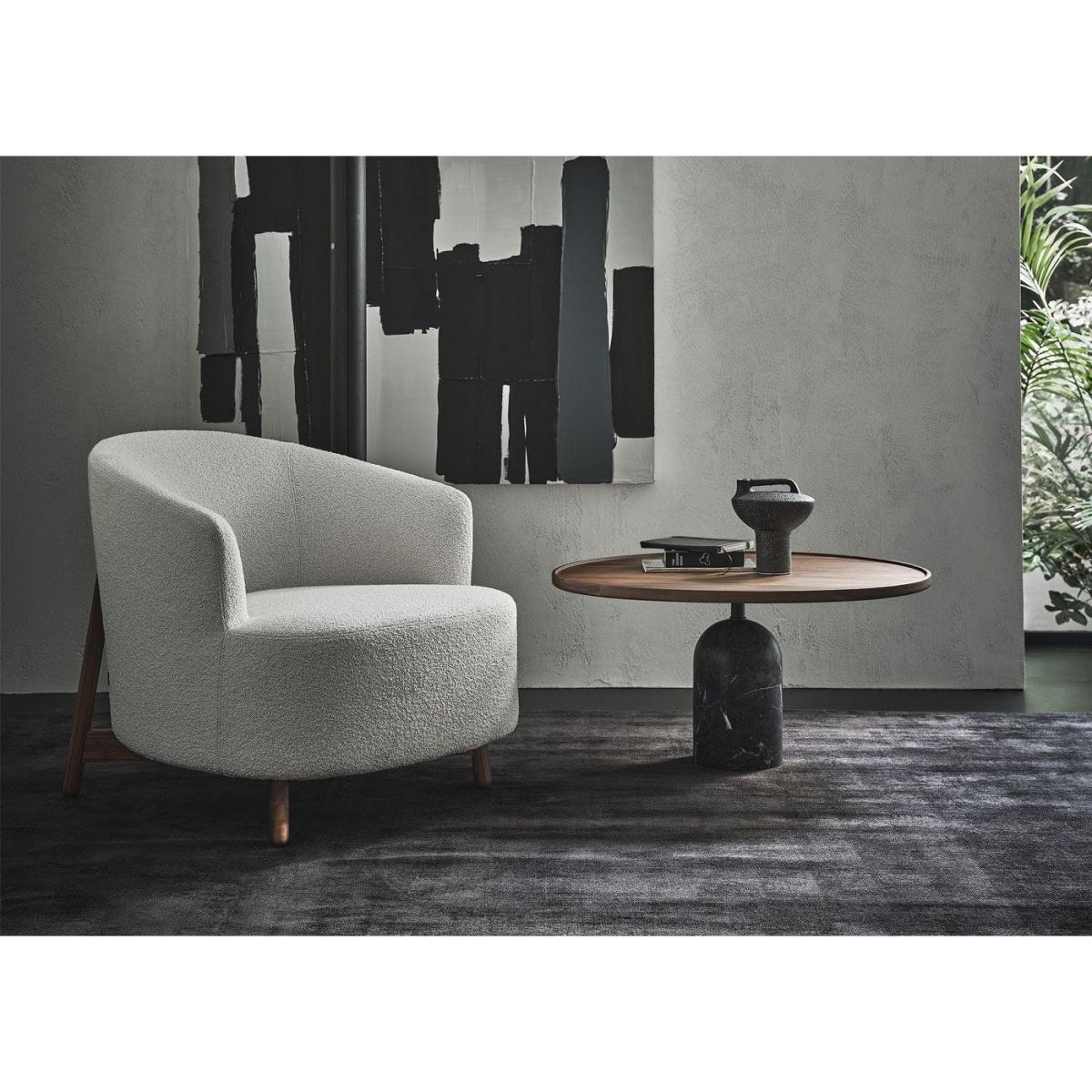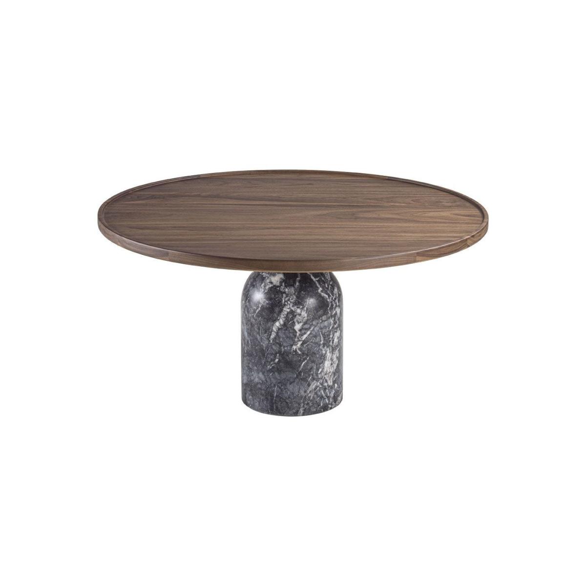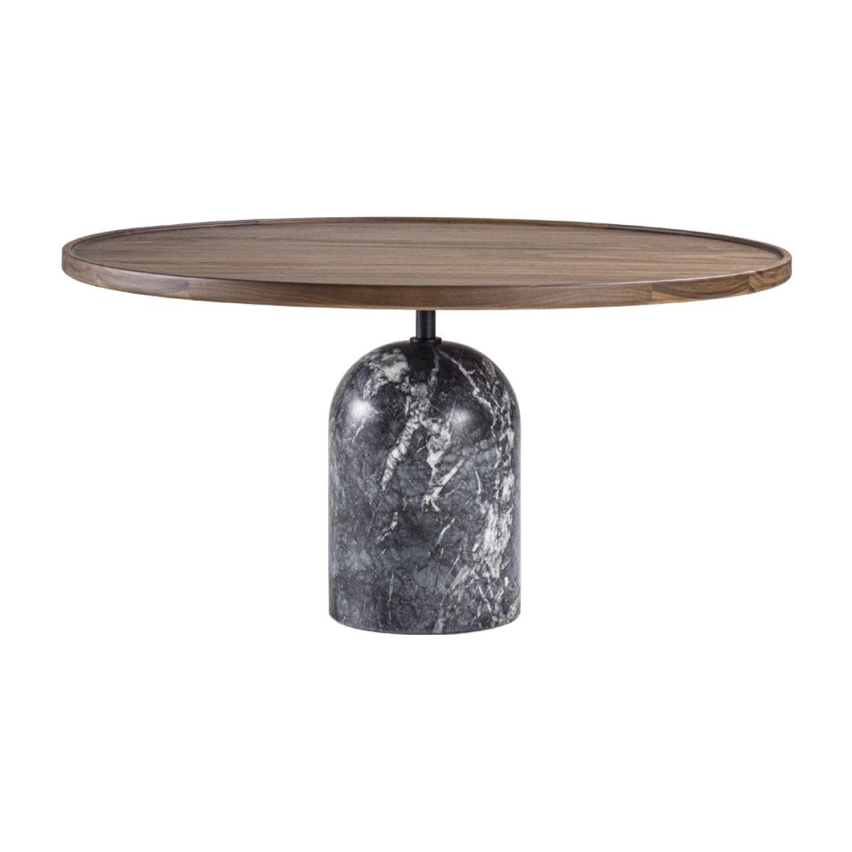 Expertly crafted by the Italian luxury furnisher brand Porada, this exquisitely Ekero coffee table ushers in all things high class. The curved, round table top is made from solid Canaletta walnut, chosen for its characterful and unique grain. Below the central pole in matt black, the cylindrical marble base is made in Grigio Carnico marble. A luxury piece that fits any contemporary home, this Ekero Round Coffee Table is perfect in any living room, bedroom, or library.