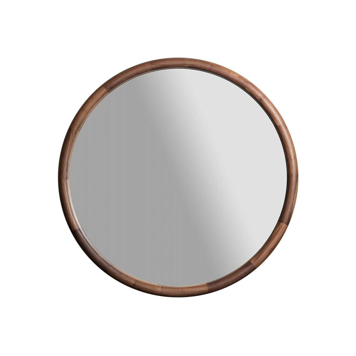 I love the Porada Giove round mirror for its clean lines and warm walnut frame, which adds an inviting touch to any space. It works particularly well in contemporary interiors, especially when paired with natural or neutral palettes, but its subtle elegance can also complement more traditional decor. Practical styling tips include hanging it over a console table or in a hallway to enhance light and create a sense of space. For a layered look, consider pairing it with other textures and materials, such as woven baskets or wooden furniture, to bring warmth and character to the room.