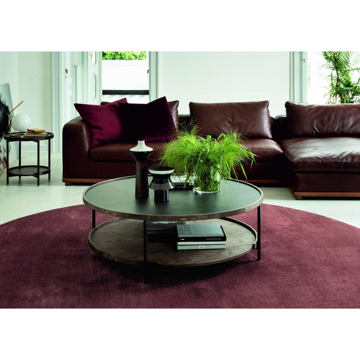 The Koster Side Table by Staffan Tollgard for Porada pairs Scandinavian functionality with Italian elegance. Featuring a matt oxide black rock top above an ash wood base, the design is supported by a Bronzoro metal frame with brushed brass feet, uniting natural materials with timeless form and modern sophistication.