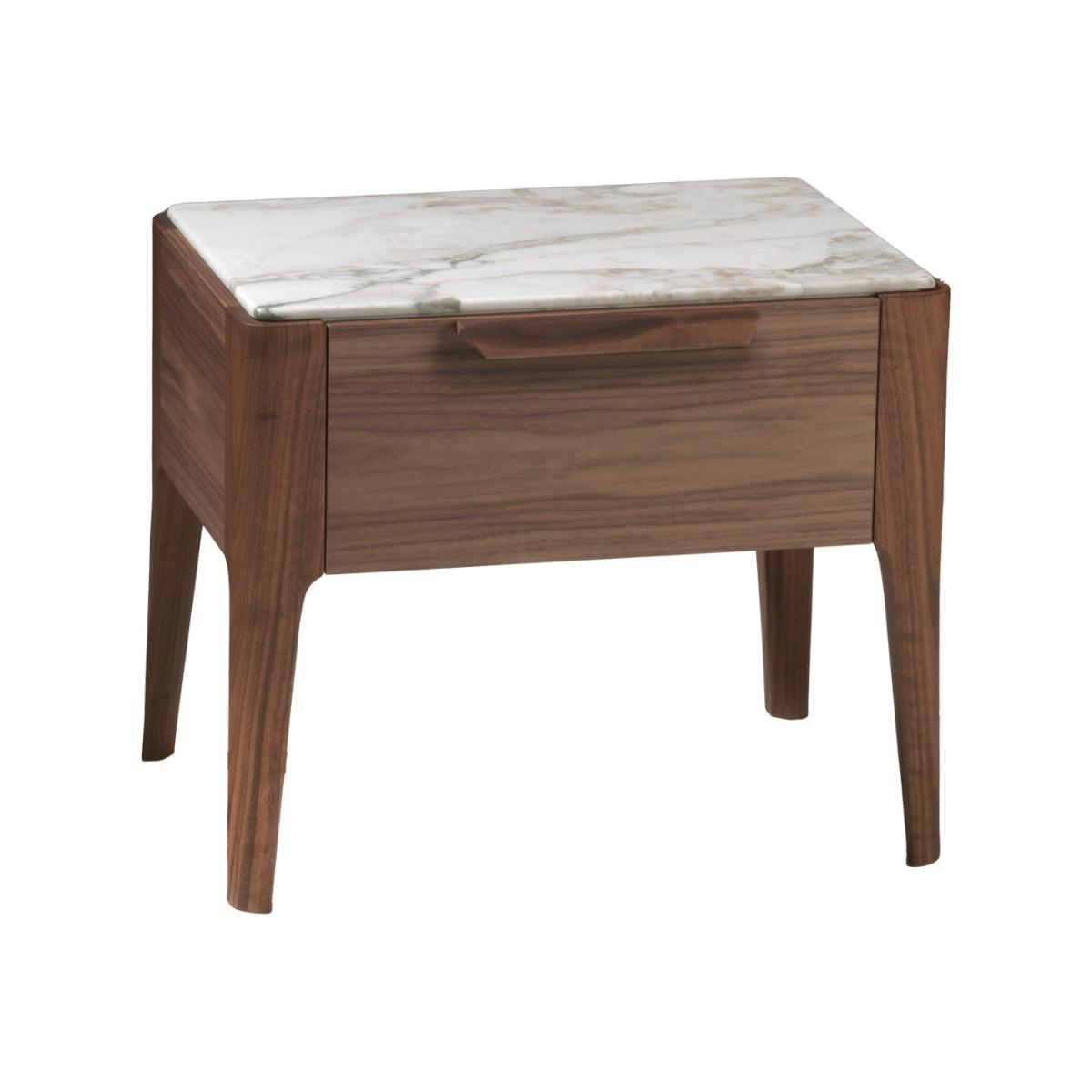 Porada Ziggy Night 1 Bedside Table in Walnut and White Calacatta Gold