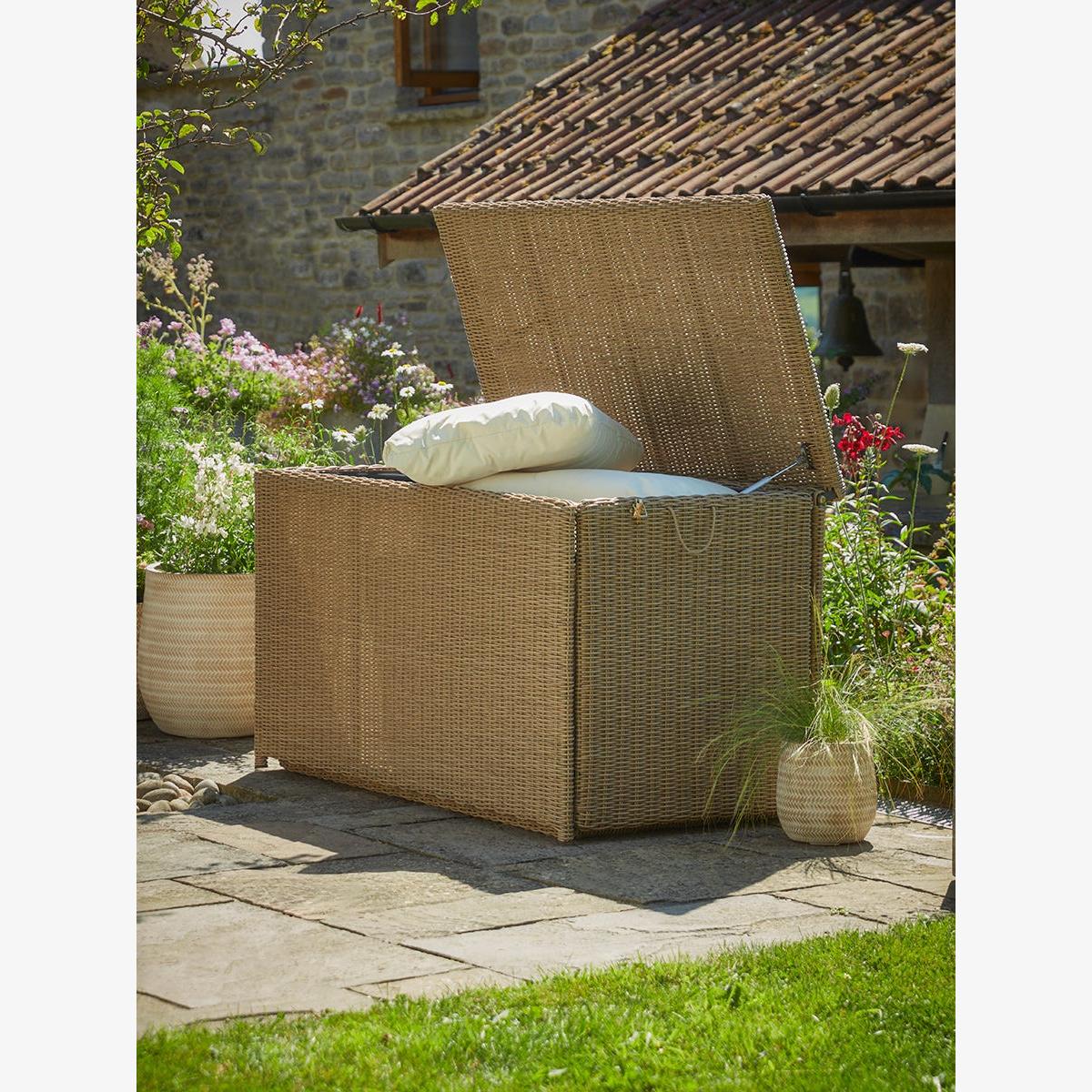 The perfect place to store your cushions - especially in the unpredictable British summers - our Porlock Storage Box is ideal for keeping your outdoor furnishings dry. Crafted from whicker, the natural tones work in all gardens, whilst the waterproof lining ensures your soft furnishings are staying protected.