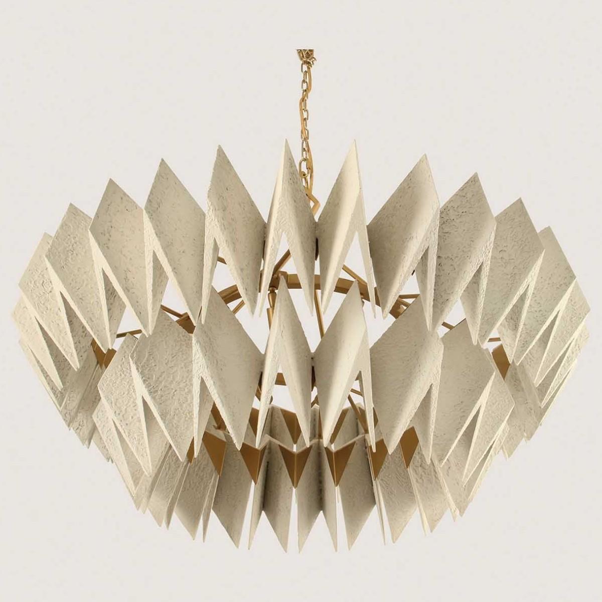 Inspired by Brutalist architecture, two tiers of origami-like folds make up The Axel Chandelier. This design can be custom sized. Many Porta Romana pieces are fully customisable. Products can be scaled up or down, proportions can be changed, and designs can be painted to your choice. Please contact us for options and best pricing.