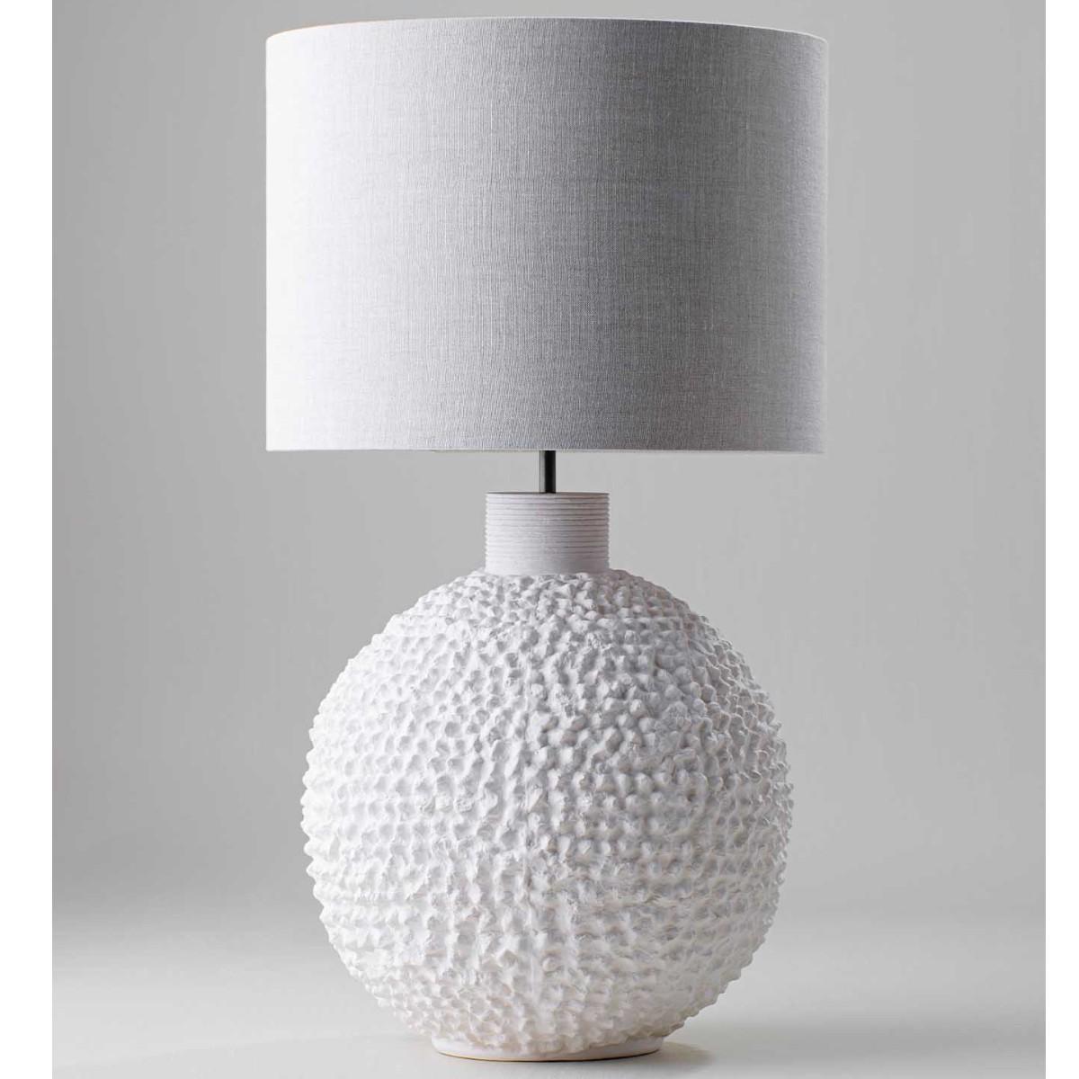 The Large Casaubon Lamp is an over-scaled piece, inspired by an African artefact found in a Parisian flea market. Each bobble that makes up the Casaubon’s texture is revealed when illuminated. Biscuit shown with 16" Tall Cylinder in Natural Linen with Cream Card lining. Many Porta Romana pieces are fully customisable. Products can be scaled up or down, proportions can be changed, and designs can be painted to your choice. Please contact us for options and best pricing.