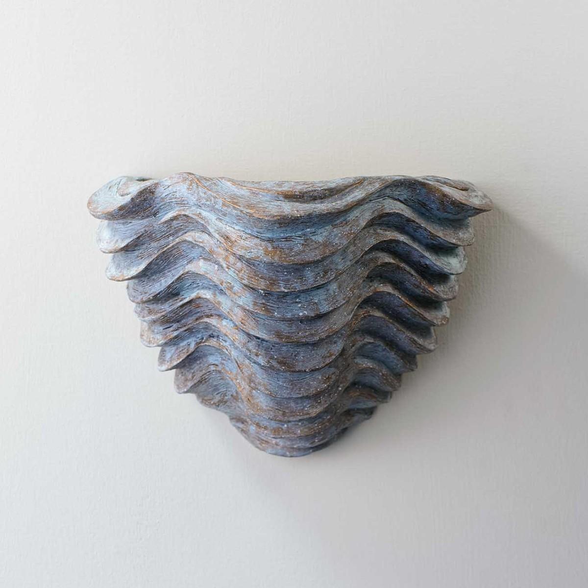 I love this smaller clam shell wall light for its striking colour and texture, which add a touch of character without overwhelming a space. Its blue verdigris finish with etched gold details makes it particularly suitable for coastal-inspired interiors, or to introduce a subtle hint of colour and luxe in more neutral settings. It works well in relaxed living rooms, hallways, or as bedside lighting in bedrooms that benefit from a sculptural accent. For styling tips, place it alongside natural materials like driftwood or wicker, and keep the surrounding decor simple to let its artisanal qualities shine. This piece adds both visual interest and a warm glow, making it a versatile choice for spaces that blend contemporary style with a bit of maritime charm.