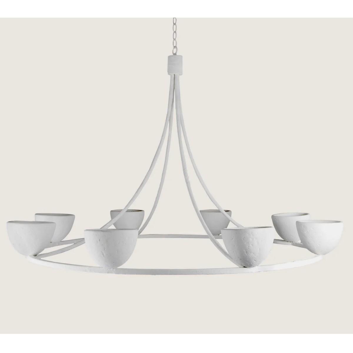 The Porta Romana Compton chandelier is a fantastic choice for adding a contemporary yet timeless touch to a variety of interiors. I love its clean, sculptural design with the plaster white finish, which makes it versatile enough for both modern and transitional spaces. It works particularly well in open-plan kitchens, dining rooms, or high-ceilinged living areas, where its striking yet understated form can make a statement without overpowering the space. For styling, pair it with neutral palettes or soft textures to let the fixture shine, and consider layering with softer lighting options for ambience. Its shape lends itself well to minimal or understated decor schemes, making it a chic focal point that enriches the overall aesthetic.