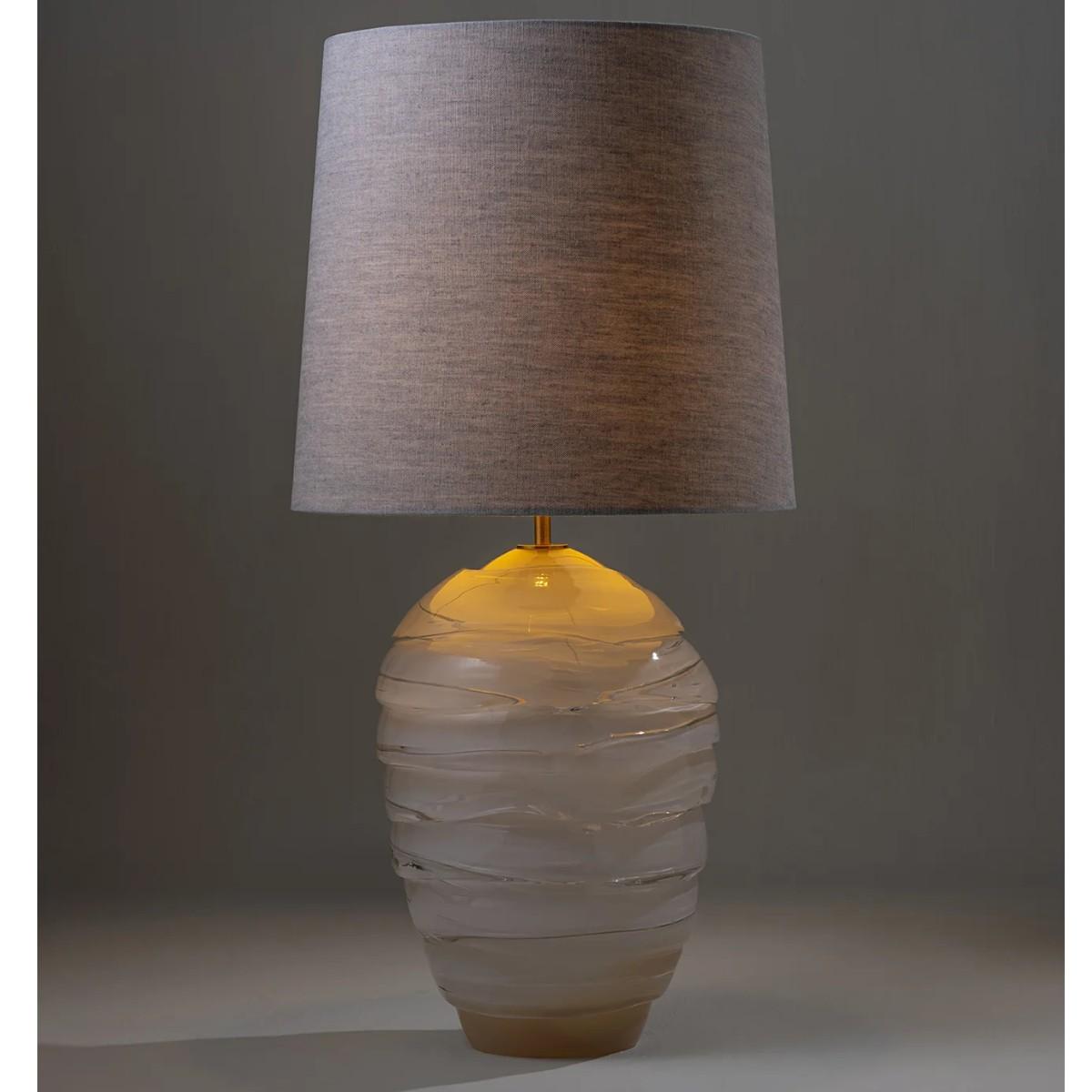 Grand and elegant with a flowing organic shape, the Espinoza lamp is a spectacular hand-blown piece formed by layers of molten glass with an opaque coloured capsule. Due to the making process each Espinoza, weighing approximately 14kgs, is completely unique. Buff shown with 18" Bongo in Natural Linen with Cream Card Lining. Many Porta Romana pieces are fully customisable. Products can be scaled up or down, proportions can be changed, and designs can be painted to your choice. Please contact us for options and best pricing.
