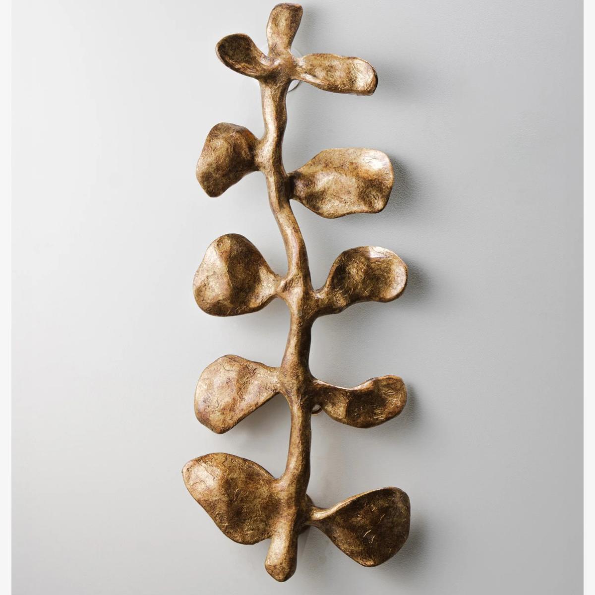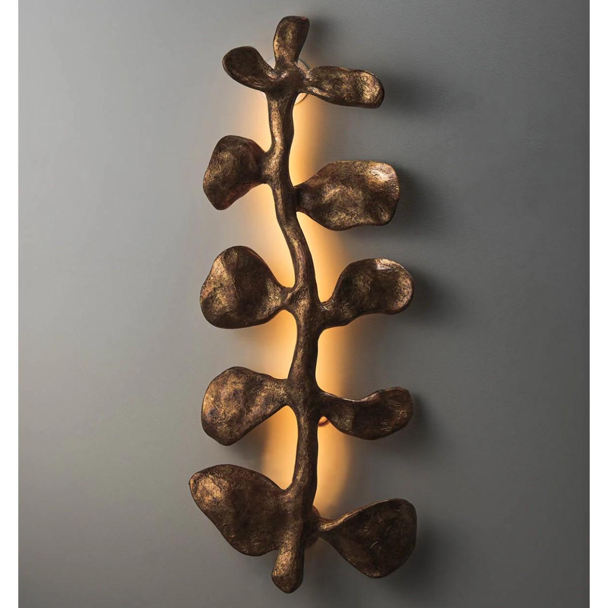 A long vertical wall light in the form of a climbing plant with five pairs of irregular, hand-sculpted leaves in varying sizes. Backlit, the Fleur wall light creates a sculptural silhouette. Available in Persimmon, a new standout finish launched for Autumn 24, Plaster White, Gold or any painted finish of your choice. Many Porta Romana pieces are fully customisable. Products can be scaled up or down, proportions can be changed, and designs can be painted to your choice. Please contact us for options and best pricing. For ALL Porta Romana orders going to the USA, a 20% wiring surcharge is applied to each item.