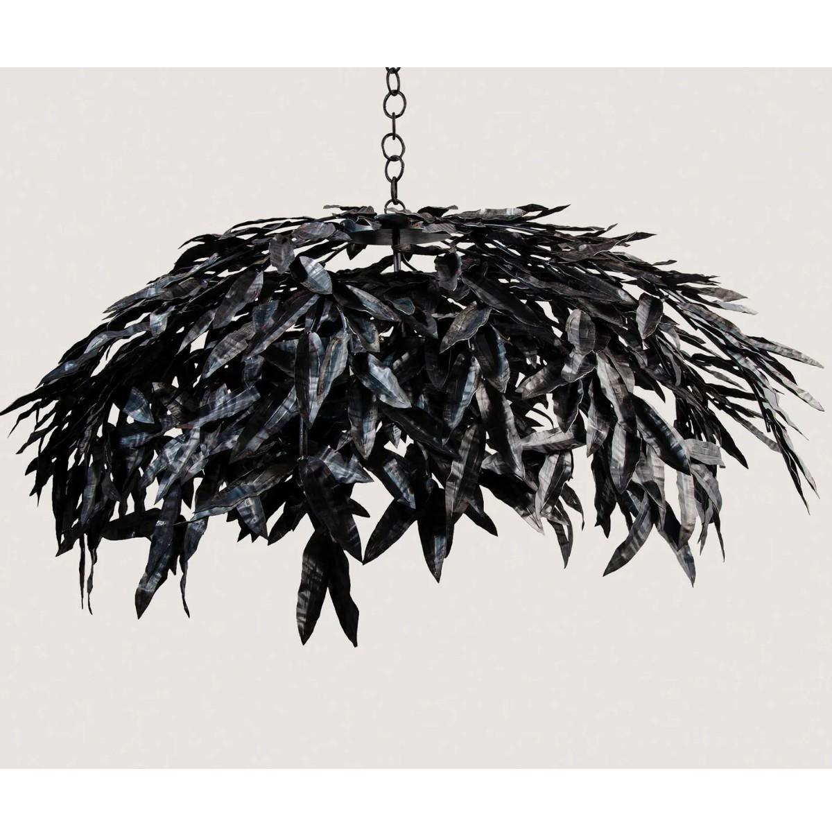 The Florence Chandelier takes its inspiration from a beautiful skirt designed in the West Indies. Hundreds of handmade and cut metal leaves hang down to form the asymmetric canopy. This design can be custom sized. Many Porta Romana pieces are fully customisable. Products can be scaled up or down, proportions can be changed, and designs can be painted to your choice. Please contact us for options and best pricing.