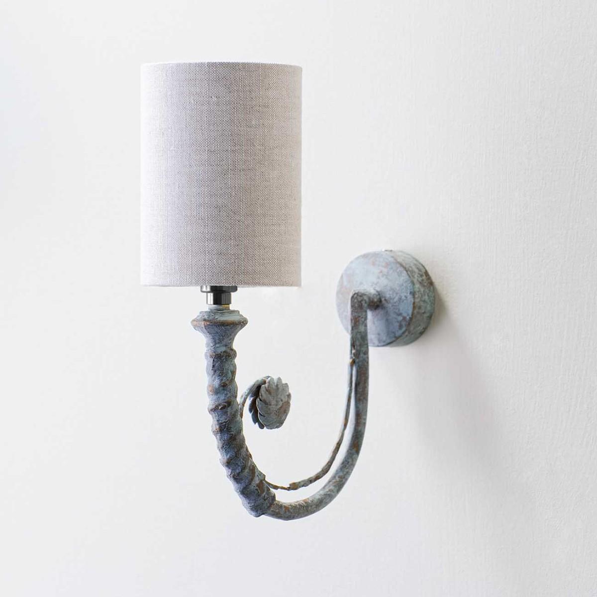 The Holbein small wall light is inspired by classical 18th century design and finished in a delicately painted Blue Verdigris simulating centuries of age. Blue Verdigris shown with 3. 5" Top Hat Shade in Natural Linen With Cream Card lining. Many Porta Romana pieces are fully customisable. Products can be scaled up or down, proportions can be changed, and designs can be painted to your choice. Please contact us for options and best pricing.