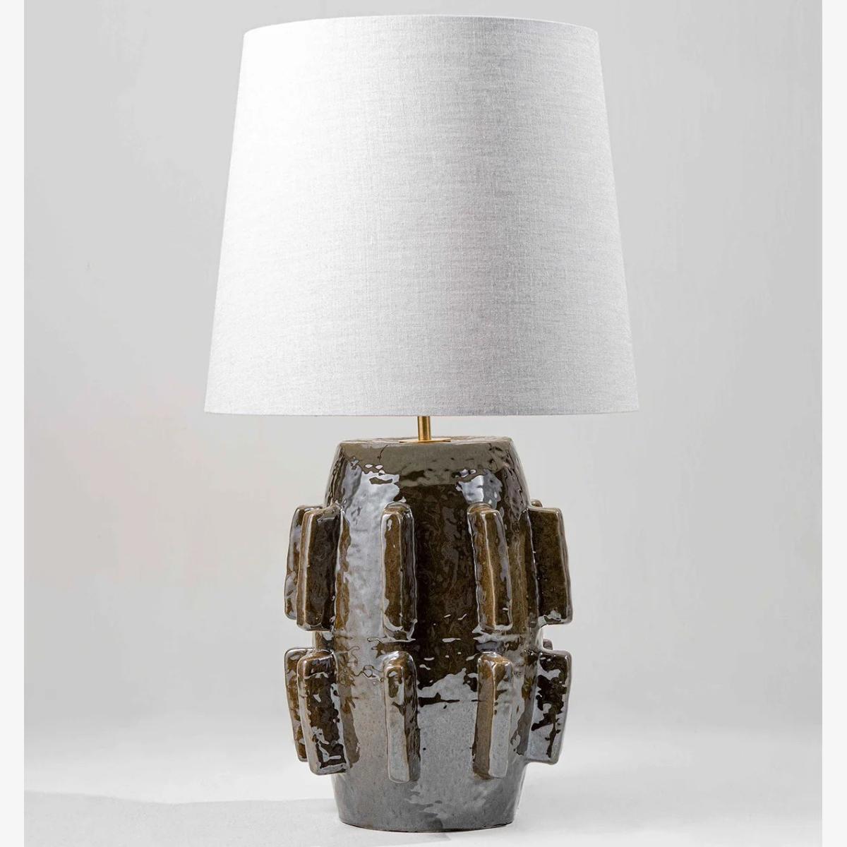 The Barbara Lamp pays homage to the modernist sculptures of Barbara Hepworth. The piece was initially hand-sculpted and textured in clay, before being produced in cast composite and finished with a matte surface in the Porta Romana workshop. Walnut shown with 16" Bongo in Natural Linen and Cream Card lining. Many Porta Romana pieces are fully customisable. Products can be scaled up or down, proportions can be changed, and designs can be painted to your choice. Please contact us for options and best pricing.