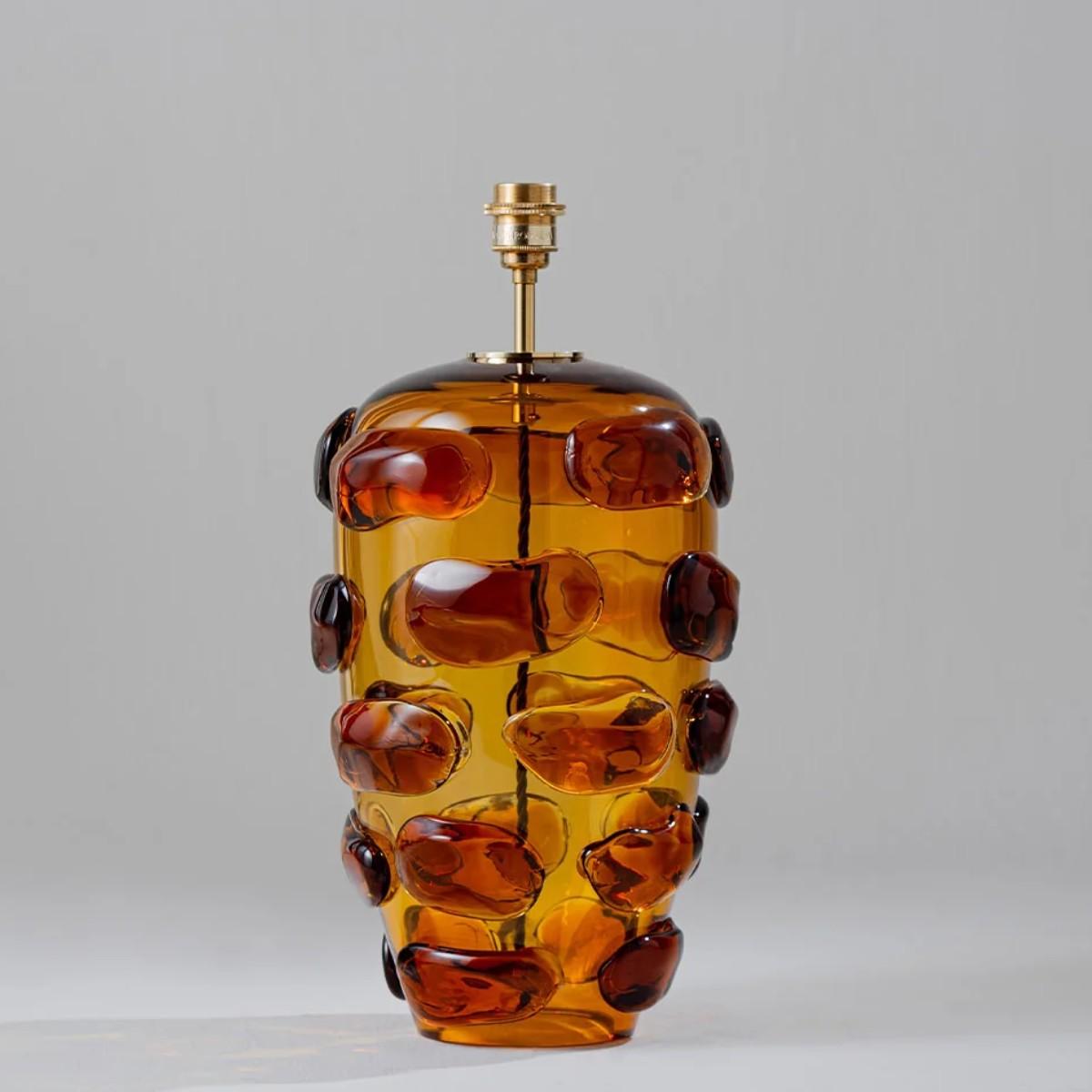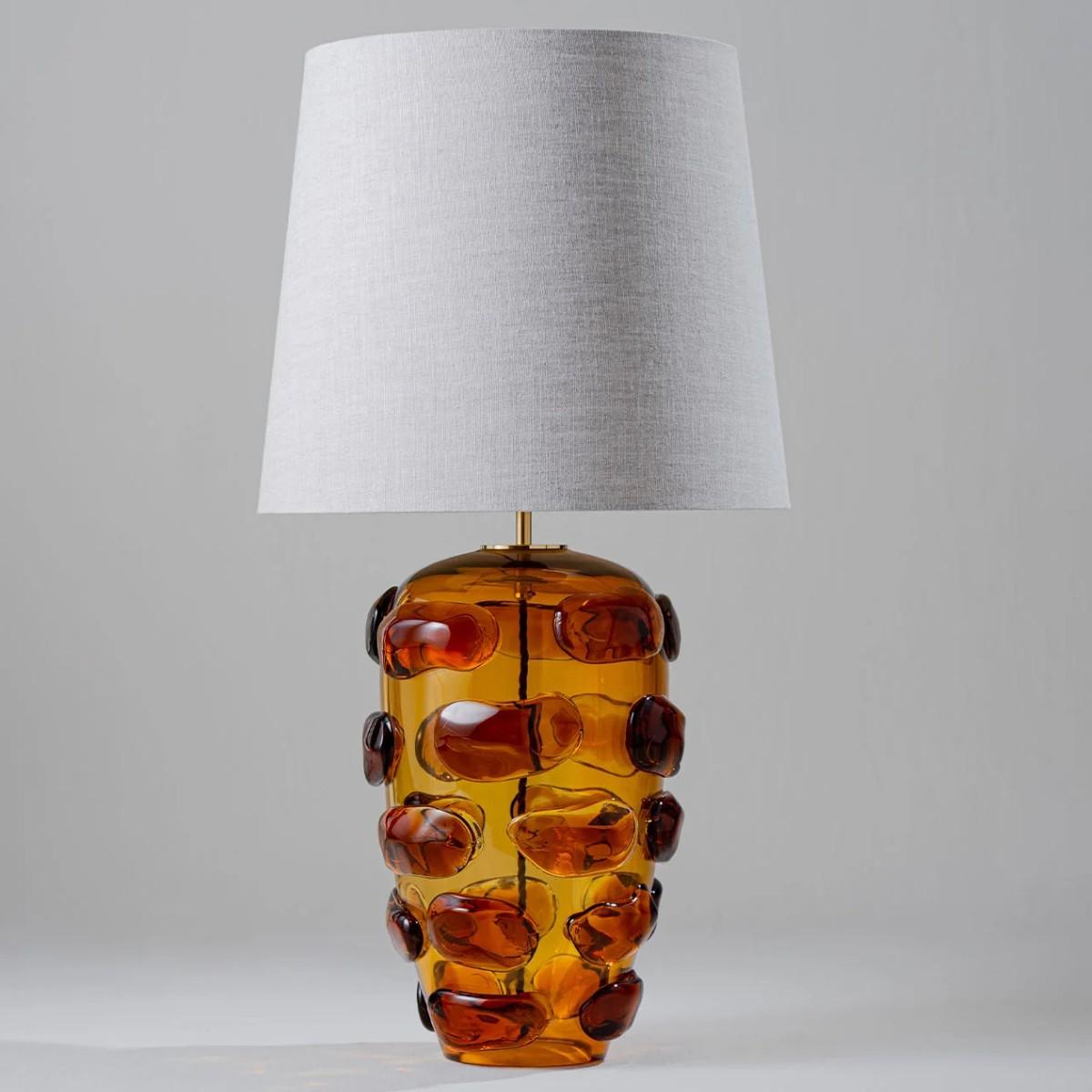 I love this lamp for its playful yet sophisticated design-it’s a real statement piece. The textured, amber-glass base adds warmth and character, making it a great choice for both eclectic and contemporary interiors. It works particularly well in living rooms or bedrooms where you want to create an inviting atmosphere. For styling tips, try pairing it with neutral or muted furnishings to let the lamp stand out, and consider placing it on a side table or console to highlight its sculptural quality. Because of its bold shape, it’s best used as an accent light rather than a primary source, so add complementary lighting for a layered effect.