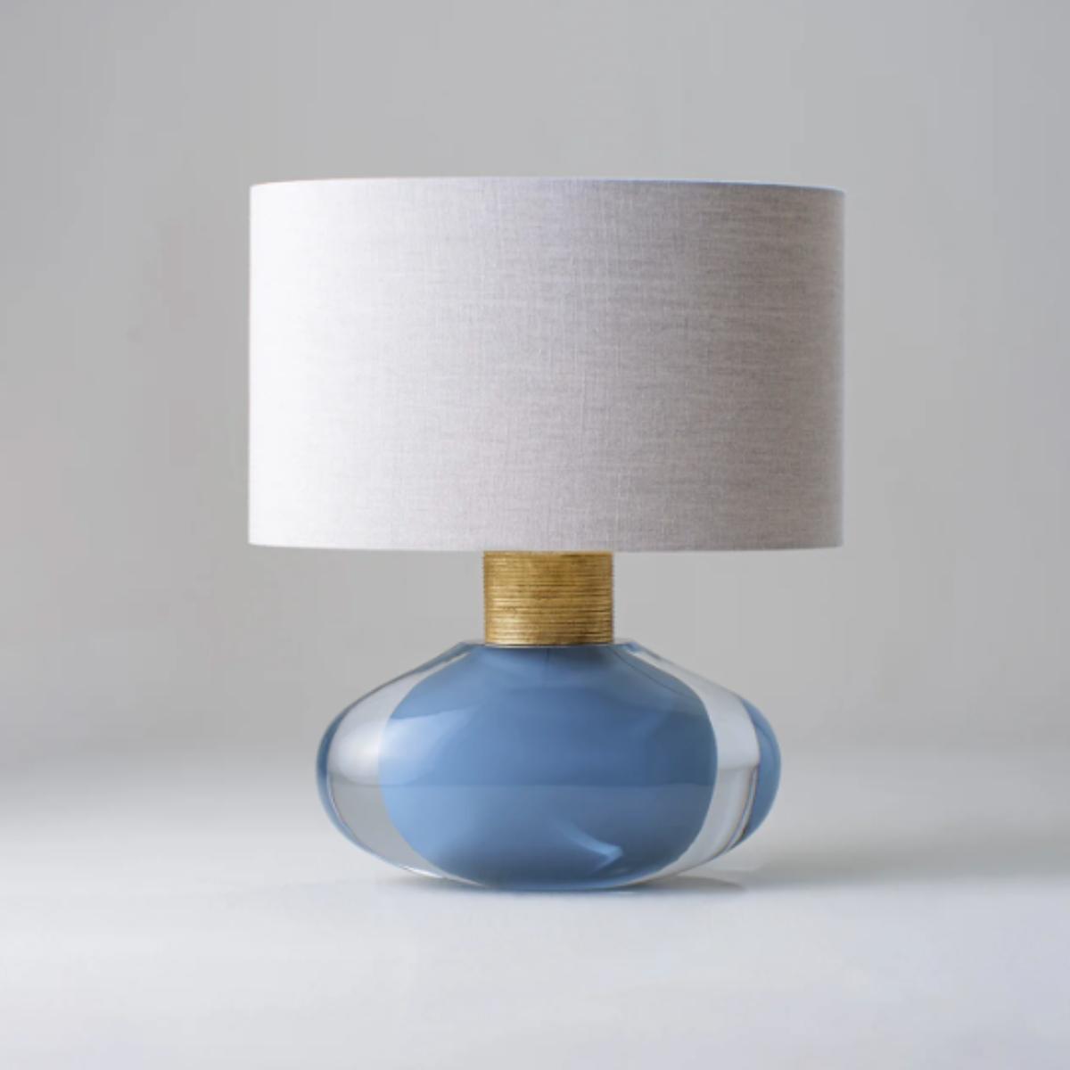 I love how this lamp combines a classic silhouette with contemporary details, making it versatile across various interiors. The hyacinth colour adds a soft, calming presence, while the decayed gold detail introduces a touch of understated luxury. It works particularly well in eclectic or modern spaces, where its unique character can be a statement piece, but it also fits beautifully within more minimal or coastal-inspired schemes. Practical styling tips include placing it on a side table or sideboard to create ambient lighting, or pairing it with similarly textured accessories for a layered look. Its colour and form make it a charming finishing touch that enhances both understated and more expressive interiors.