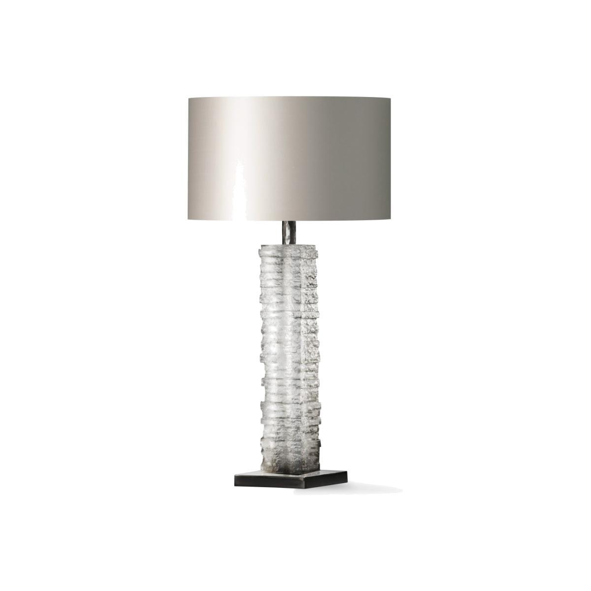 The Crystal Strata column is constructed from a magnificent block of cast glass. Each one is individually created and it weighs a massive 11kg! The base is available in Antiqued Brass or Nickel and it looks stunning in any one of our fabulous silks, but we particularly love it with Taupe.