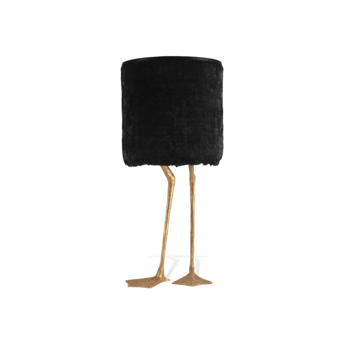 Porta Romana I Duck Feet Lamp I Decayed Gold With Black Duck Feather Shade/Black Satin Lining