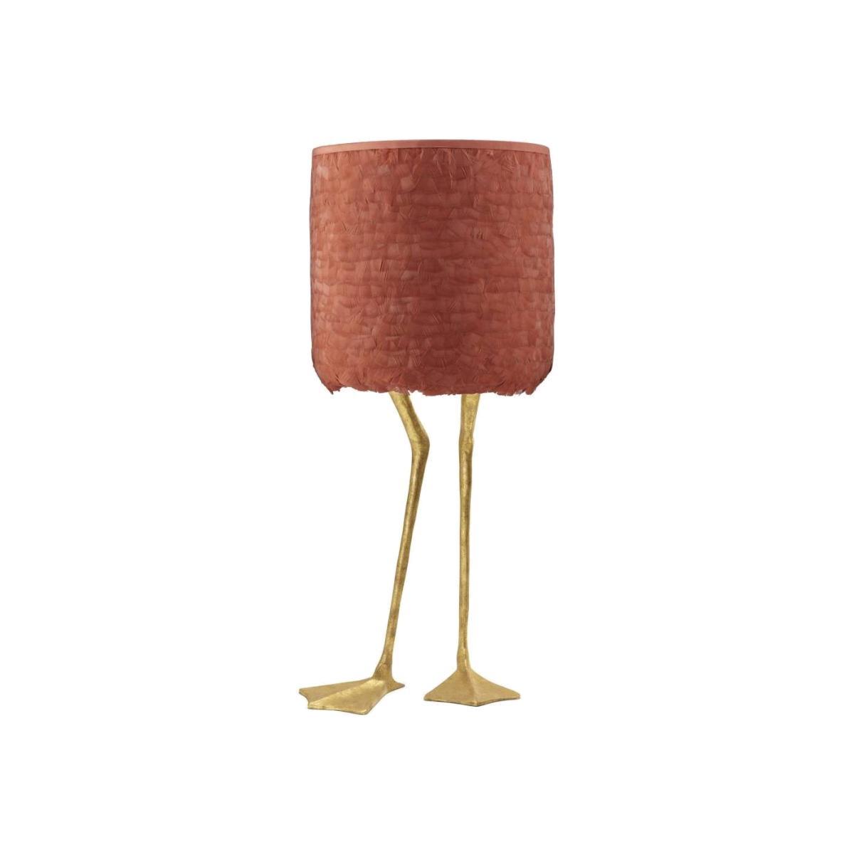 I love this lamp for its playful yet sophisticated take on design. The duck feet base lends a quirky charm, making it a standout piece, while the decayed gold finish adds a rich, vintage feel. The terracotta duck feather shade and brick lining introduce warm tones and texture, perfect for adding depth to eclectic or bohemian interiors. It works well in living rooms or bedrooms with layered furnishings and can serve as both a statement lamp and an art piece. For styling tips, position it on side tables or console units where its character can be appreciated, and consider pairing it with earthy textiles or antique accessories to enhance its playful yet refined vibe.