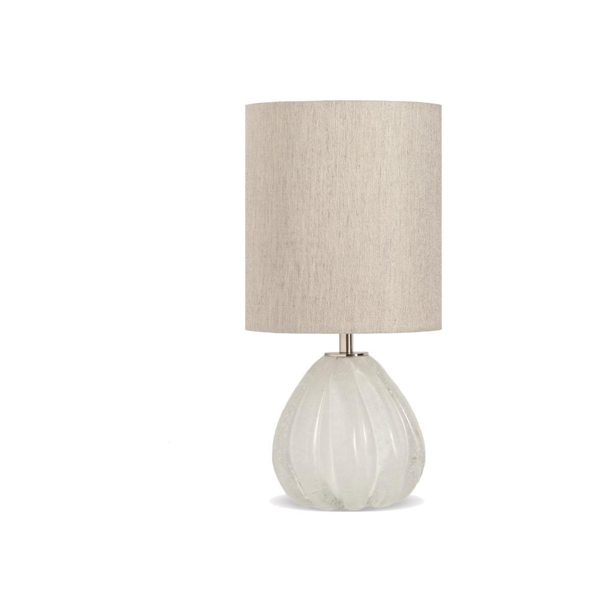 This adorable lamp is blown in three jewel-box colours; Olive, Saffron and Aubergine and the three beautifully muted colours, Fawn, Bluebell and Snow. Its small scale makes it perfect for use as a bedside lamp and it looks delightful as a mis-matched pair. We are showing them with a selection of vibrant shades. You can dress them more casually in one of our linens, or have even more fun using contrasting coloured silk linings.