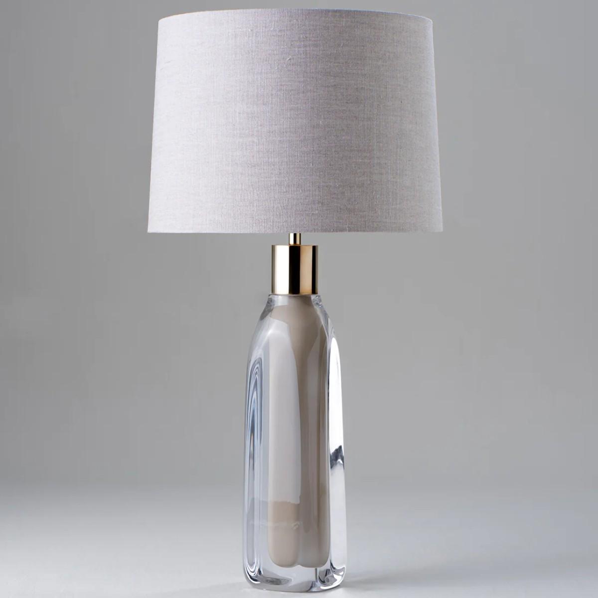 Referred to as ‘an over-scaled ice cube’ by our design team, the Large Fitzgerald is a weighty and refined glass piece, finished with a classic collar formed of once-loved brass or nickel. Moth with Antique Brass with 14" Drum in Natural Linen with Cream Card lining. Many Porta Romana pieces are fully customisable. Products can be scaled up or down, proportions can be changed, and designs can be painted to your choice. Please contact us for options and best pricing.