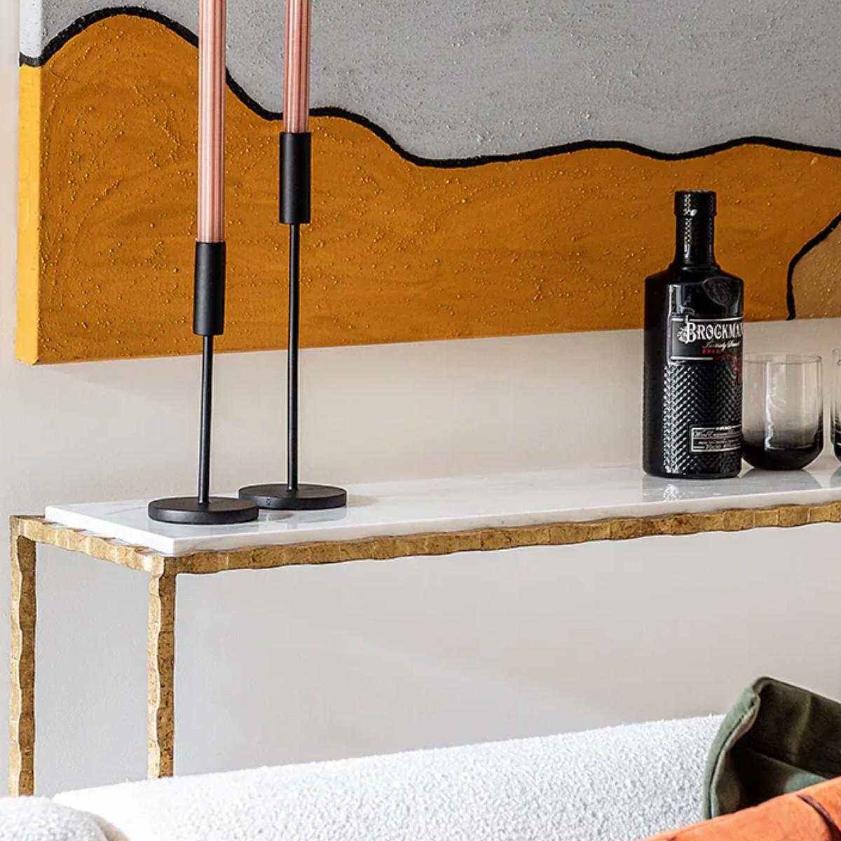 I’m a fan of the slimline Giacometti console for its crisp white top set off by that textured, Versailles-gold base - it brings just the right amount of polish without feeling overbearing. It suits entry halls, behind-sofa runs and even minimalist living rooms where you want a touch of sculptural drama. Styling tip: keep the top uncluttered by choosing a single statement lamp or a low-profile art object, then add a small stack of books or a pair of glass vases. A round mirror above will bounce extra light, while a tray or slim planter adds depth without obscuring the table’s elegant legs.