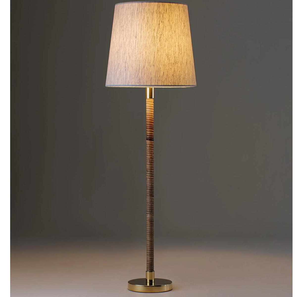 I love this floor lamp for its sleek yet warm aesthetic. The cane detail and brass base add a touch of sophistication while keeping it versatile enough to work in both contemporary and more traditional interiors. It's especially effective in living rooms or bedrooms where a mix of textures and natural materials create a layered look. Practical styling tips include pairing it with neutral-toned furniture to highlight its craftsmanship or placing it beside a statement armchair or sofa for cosy reading corners. Its size and elegant presence also make it ideal as a statement piece in a corner, giving light and style without overpowering the space.