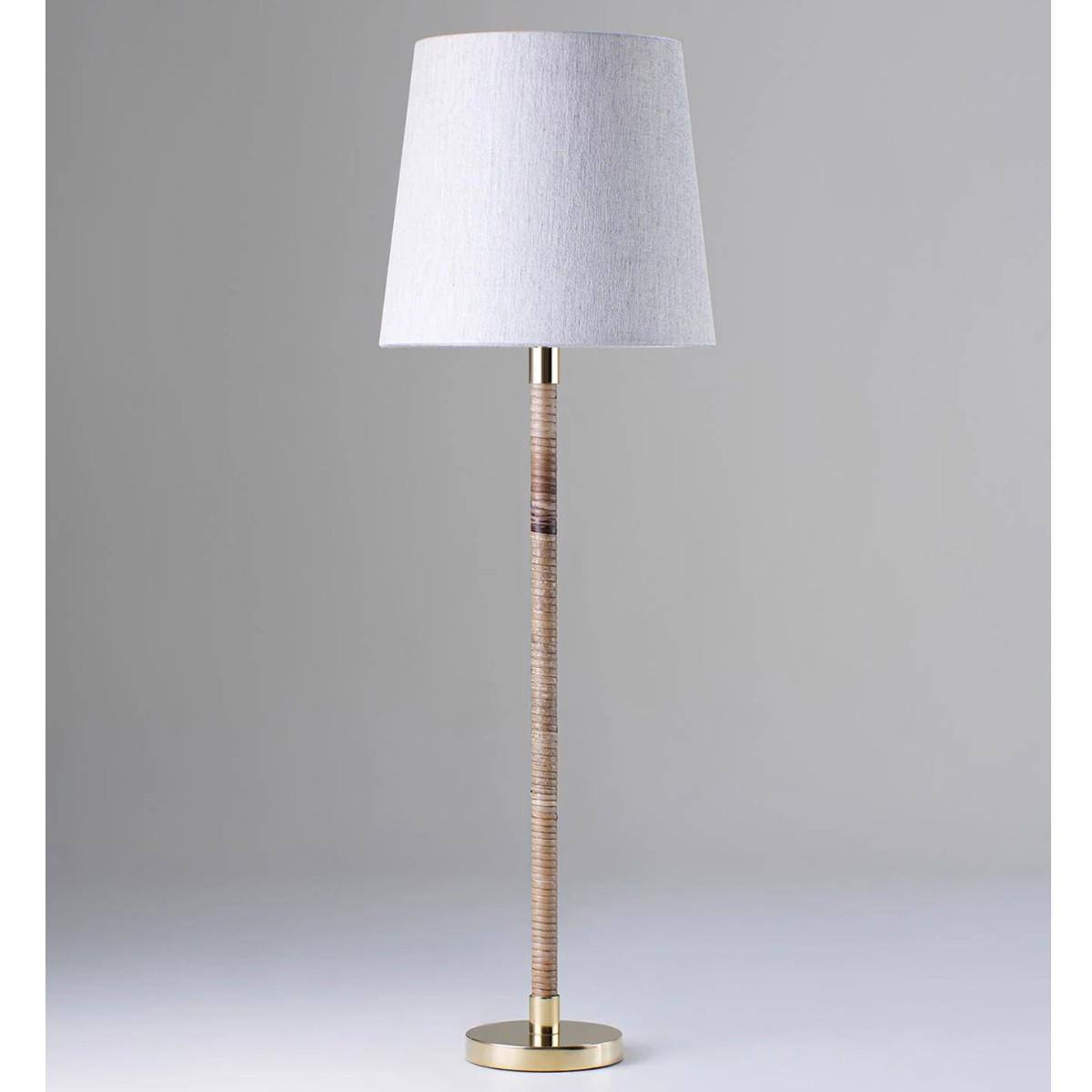The Large Holden Lamp offers a taller alternative to the Small Holden. The cane that wraps around the stem has subtle markings that have been maintained throughout the making process. As Part of the Holden Family this product can be made with both Brass and Antique Brass. Dark Cane in Brass shown with 10" Bongo in Ghost Linen with Cream Card lining. Many Porta Romana pieces are fully customisable. Products can be scaled up or down, proportions can be changed, and designs can be painted to your choice. Please contact us for options and best pricing.