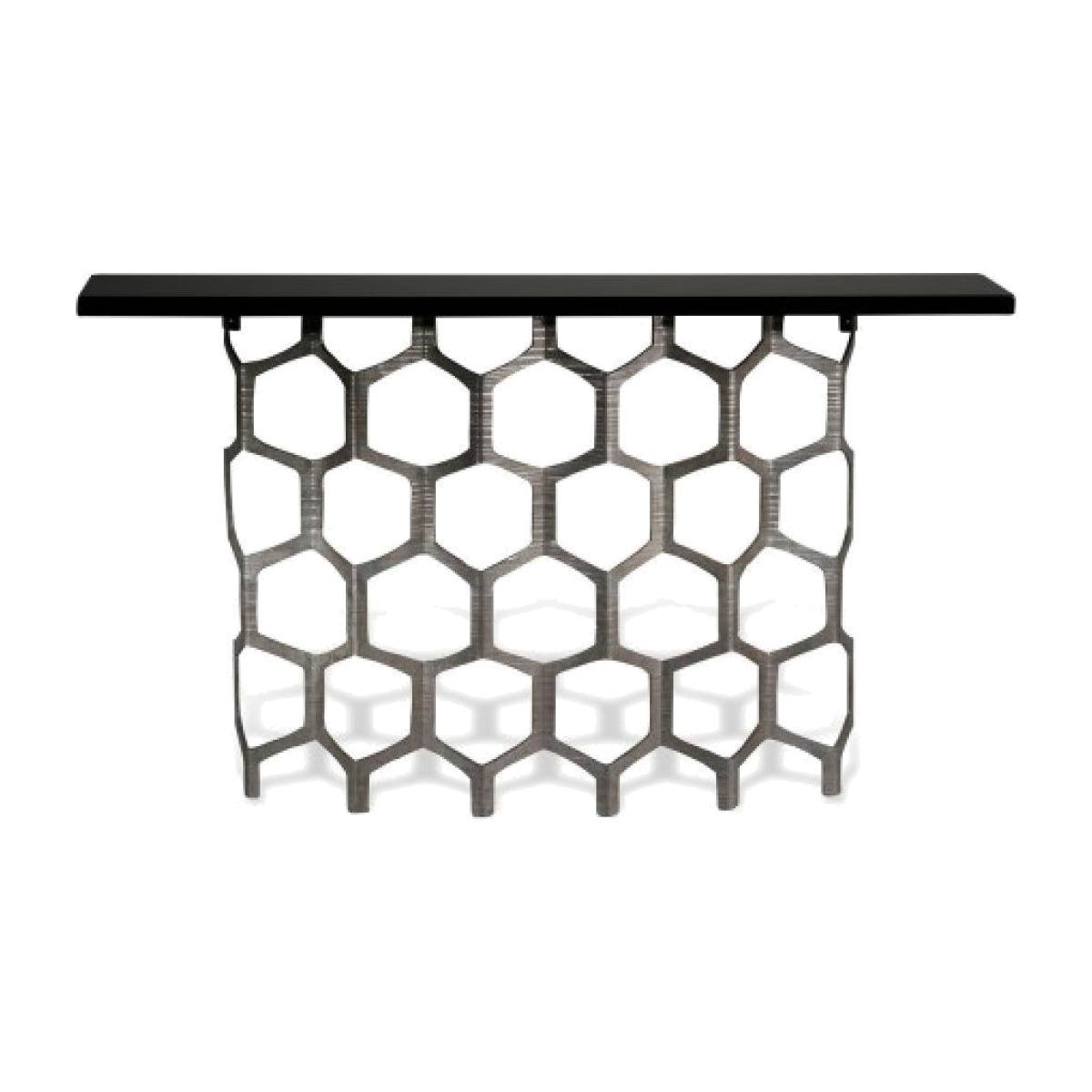 Porta Romana I Honeycomb Console Table Decayed Silver with Black Lacquer Top