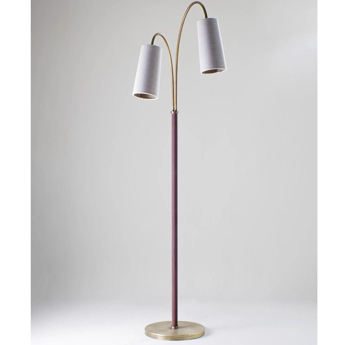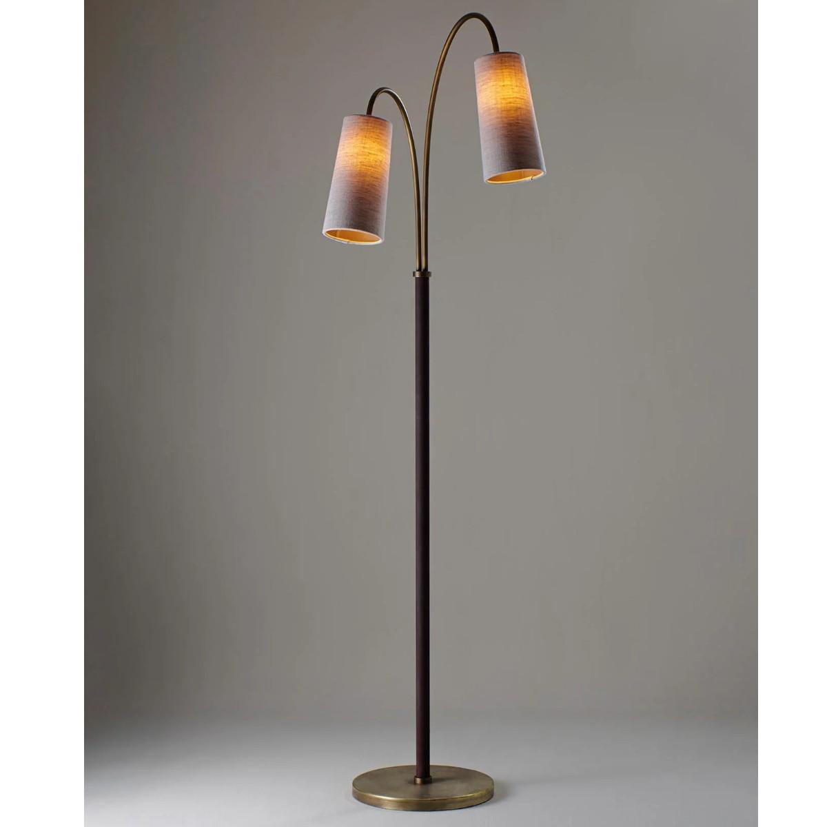 I love this lamp for its sophisticated blend of antique brass and bromine finish, which adds a layer of warm, vintage appeal. It's versatile enough to work well in both contemporary and more traditional interiors, particularly in living rooms, reading nooks, or corner spaces where a statement piece is desired. For styling tips, consider pairing it with mid-century furniture or placing it alongside neutral-toned textiles to let the metallic details stand out. Its dual-headed design also offers practical lighting options, making it perfect for task lighting or creating ambient glow in a variety of settings. Keep the surrounding decor minimal to let the lamp shine as a key design feature.