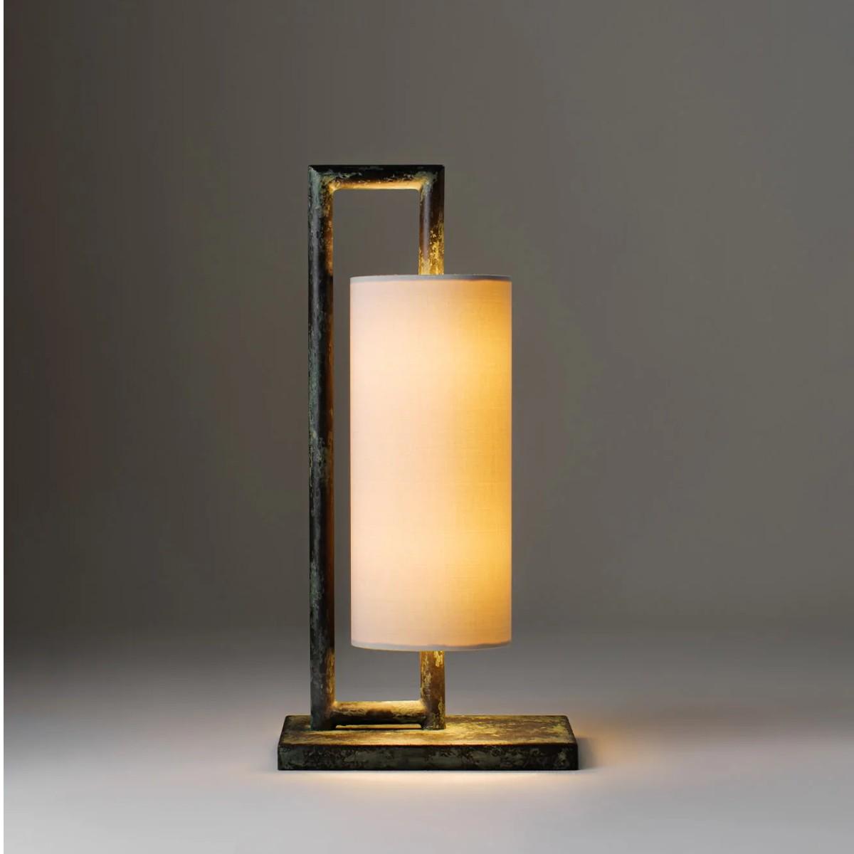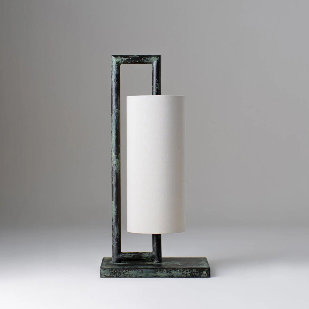 I love this lamp for its sculptural quality and unique verdigris finish, which adds character and a touch of antiqued charm to any space. It's versatile enough to work well in both contemporary and more traditional interiors, especially those with a slightly industrial or vintage edge. For styling tips, consider placing it on a side table or console for visual interest, and pair with other textured materials or muted colours to let its finish stand out. Its clean lines and distinctive finish make it a statement piece that can elevate an understated scheme or complement eclectic décor.