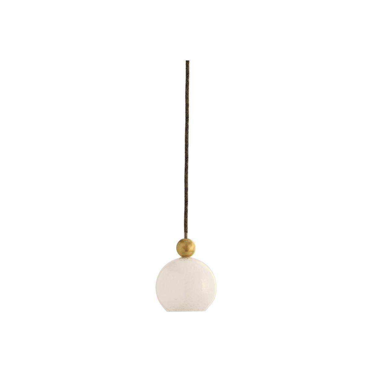 A compact, contemporary yet classic pendant that would work beautifully flanking a bed or illuminating a reading nook. Suspended from a fabric flex, a mould-blown milk-glass sphere giving a soft, diffuse light is topped by a solid brass ball with a smart matte finish. Available in Milk Glass with Black Braided Fabric Flex (pictured) or Milk Glass with Light Grey Braided Fabric Flex.