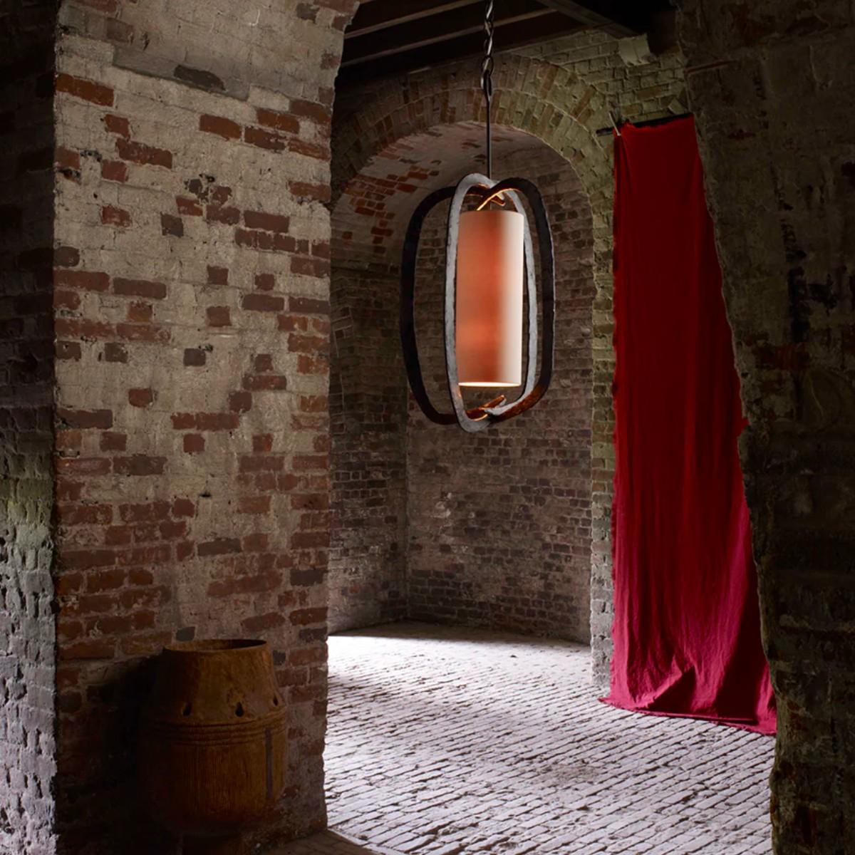 The soft fruit like shape of this lantern could be the profile of an apple and has the irregular organic quality of a pumpkin. Primitive in style, it is sophisticated in its execution and perfectly finished with its graphic shade. Burnt Silver shown with Putty Silk with Cream Card lining. Many Porta Romana pieces are fully customisable. Products can be scaled up or down, proportions can be changed, and designs can be painted to your choice. Please contact us for options and best pricing. For all orders going to the US, an 85% UL surcharge will be applied to account for US wiring requirements.