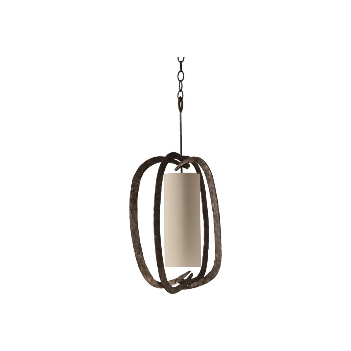 The soft fruit like shape of this lantern could be the profile of an apple and has the irregular organic quality of a pumpkin. Primitive in style, it is sophisticated in its execution and perfectly finished with its graphic shade.