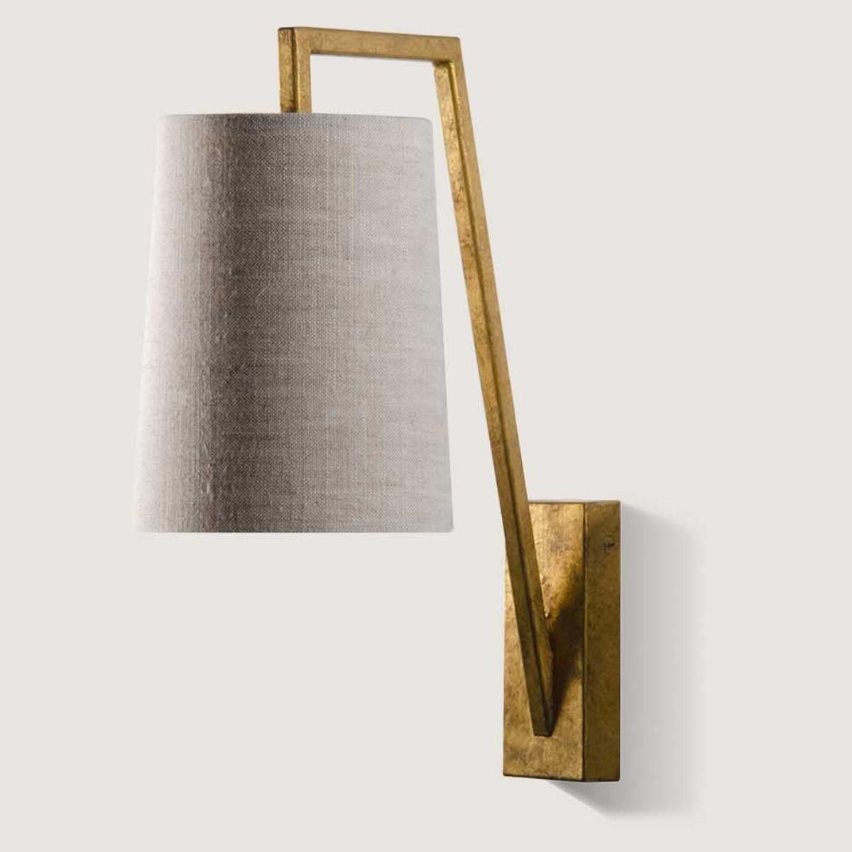 The Monty Junior Wall Light was inspired by mid-century lighting design, with its sharp angles and clean-cut silhouette. French Brass shown with 5" Monty Empire in Natural Linen with Cream Card lining. Many Porta Romana pieces are fully customisable. Products can be scaled up or down, proportions can be changed, and designs can be painted to your choice. Please contact us for options and best pricing.