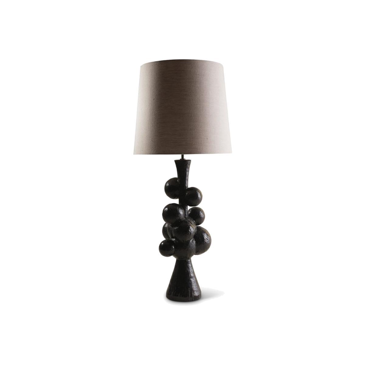 I love this lamp for its daring sculptural silhouette and rich, obsidian finish, which makes it a versatile piece that works well in both modern and eclectic interiors. It’s particularly effective as a statement table lamp on a bedside table or console, adding depth and an air of sophistication. When styling with this lamp, consider pairing it with neutral or textured fabrics to let its unique shape and dark tone serve as a standout feature. Practical tips include keeping surrounding surfaces uncluttered to showcase its form and balancing its weighty presence with lighter accessories elsewhere in the room to prevent the space from feeling too heavy.