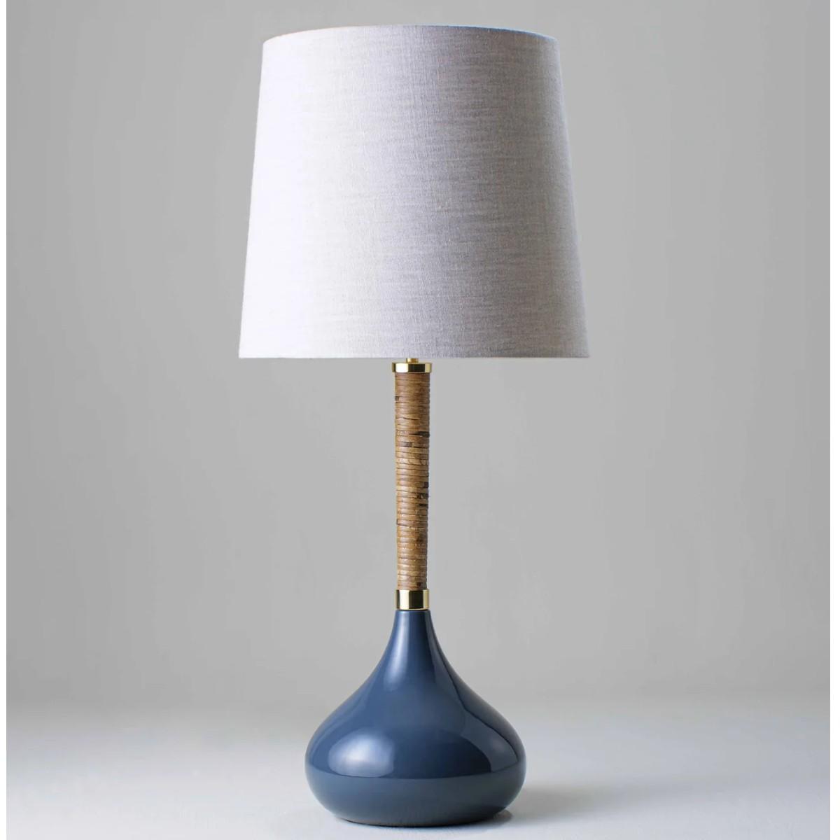 The Phoebe lamp is a nostalgic reference to the 70’s. Formed of a glazed ceramic base and a wrapped cane stem, these two components gracefully meet with a brass junction to form a seamless piece of design. Shown with 14" Bongo in Natural Linen with Cream Card lining. Many Porta Romana pieces are fully customisable. Products can be scaled up or down, proportions can be changed, and designs can be painted to your choice. Please contact us for options and best pricing.