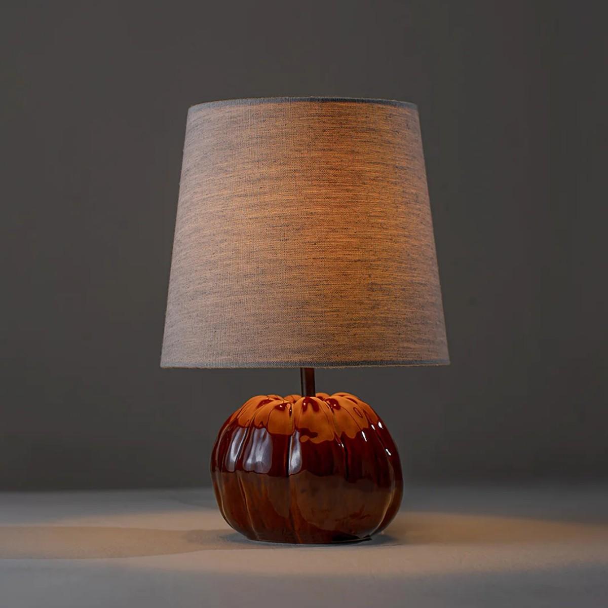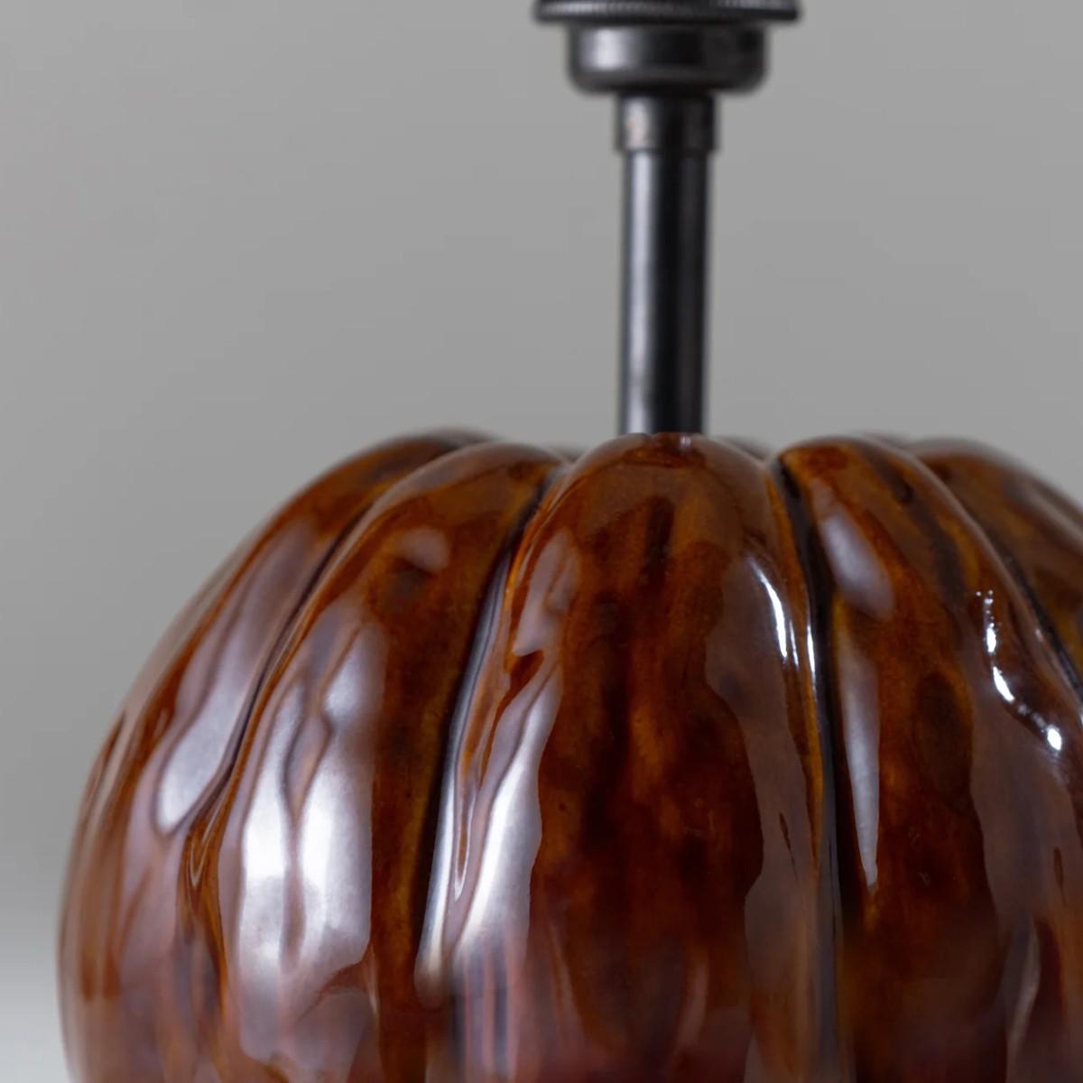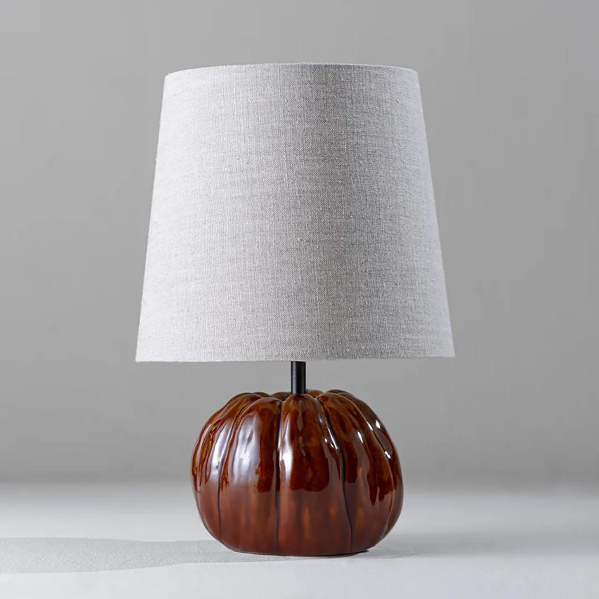 The Pumpkin Lamp is one of Porta Romana's smallest ceramic table lamps. Its undulating textures were sculpted from life and cast in resin, and it is completed with a bronze stalk to create space between the lamp and the lampshade. Available in three new glazes, hand-mixed by Porta Romana including Campfire, Sunflower and Snowflake. Also available in Toad and Plaster White, or any custom painted finish of your choice. Campfire shown with 10" Bongo in Natural Linen and Cream Card lining. Many Porta Romana pieces are fully customisable. Products can be scaled up or down, proportions can be changed, and designs can be painted to your choice. Please contact us for options and best pricing. For all orders going to the US, an 85% UL surcharge will be applied to account for US wiring requirements.
