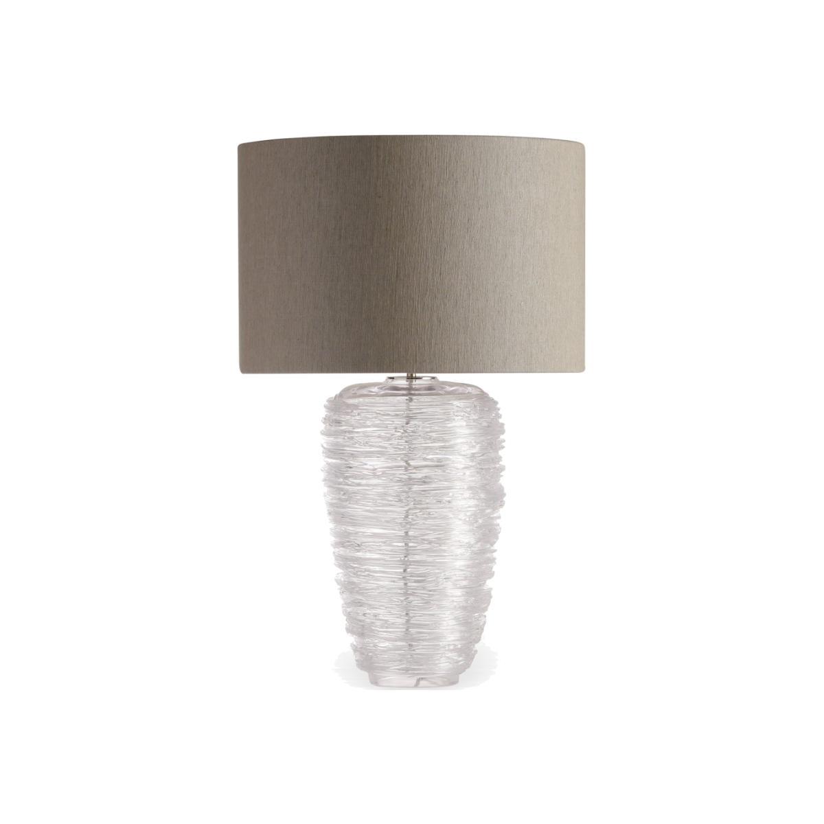 I love this clear thread lamp for its modern yet tactile appeal; the textured glass base adds visual interest without overwhelming a space. It works well in contemporary interiors as a statement piece on side tables or in a corner, but also has a versatile quality that can complement eclectic or minimalist schemes. Practical styling tips include pairing it with neutral-toned furnishings for a calming effect or contrasting it against darker accents to make the lamp an eye-catching focal point. Its translucence and understated colour make it easy to incorporate into various colour palettes, bringing a subtle sophistication to living rooms, bedrooms, or even entryways.