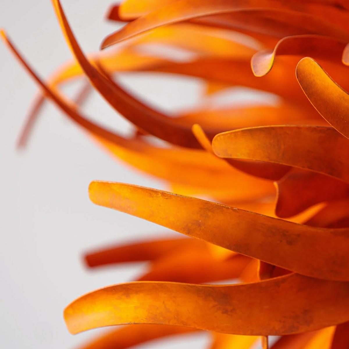 Modelled on a chestnut seed pod, this wild organic piece is dramatic in style and scale. Exquisite sculptural tendrils of folded steel curlicue around each other, opening to reveal a soft glow. Many Porta Romana pieces are fully customisable. Products can be scaled up or down, proportions can be changed, and designs can be painted to your choice. Please contact us for options and best pricing. For all orders going to the US, an 85% UL surcharge will be applied to account for US wiring requirements.