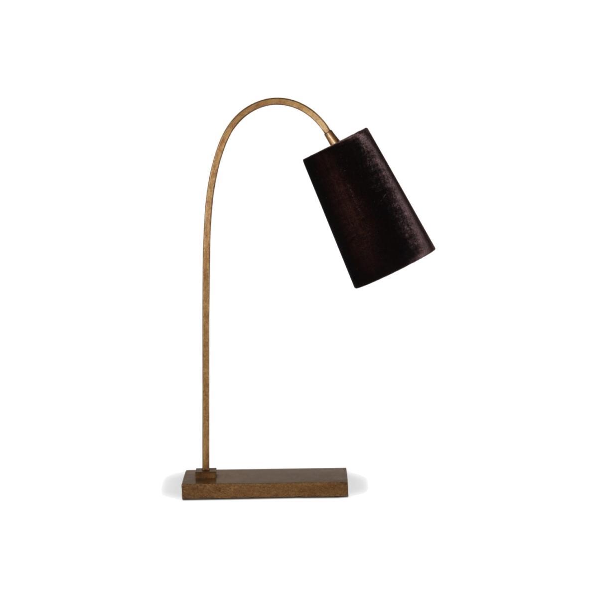 An elegant and simple piece with endless uses. A descendent of the incredibly popular Willow Wall Light, the table lamp has the same familiar curve on a longer stem and rectangular base. It is finished off with a specially paired shade. With such a subtle base, an opportunity for a fun shade presents itself. Our gathered velvets and printed fabrics are the perfect match to Willow. Available in Burnt Silver, Bronzed and French Brass.