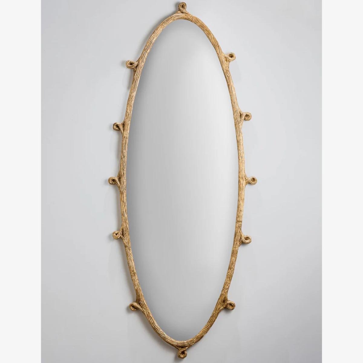 Jolly large, a full-length mirror. Whimsical in shape, the Jolly mirror is formed by a train of sculpted wisteria, curved into loops, creating details that suggest an element of enchantment and joy. Also available in small and in any custom painted finish. Many Porta Romana pieces are fully customisable. Products can be scaled up or down, proportions can be changed, and designs can be painted to your choice. Please contact us for options and best pricing.